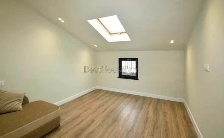 Недавно отремонтированный, прожил 1 месяц, есть солнечная установка, встроенный пылесос, дом охлаждается и обогревается специальной системой, электричество благодаря установке бесплатное. Закрытый район (Солнечный город). Гараж и возможность припарковать еще 2 машины. Имеется двор 120 квадратных метров, полупостроенная летняя кухня. Большая крыша, которая также будет служить террасой.
