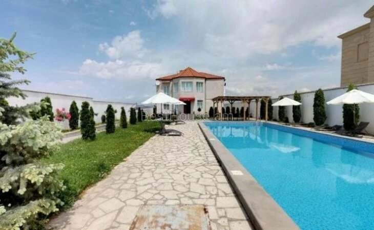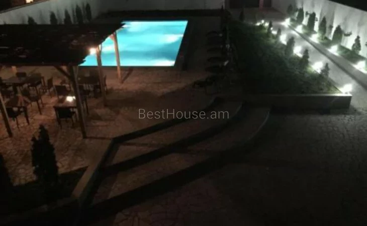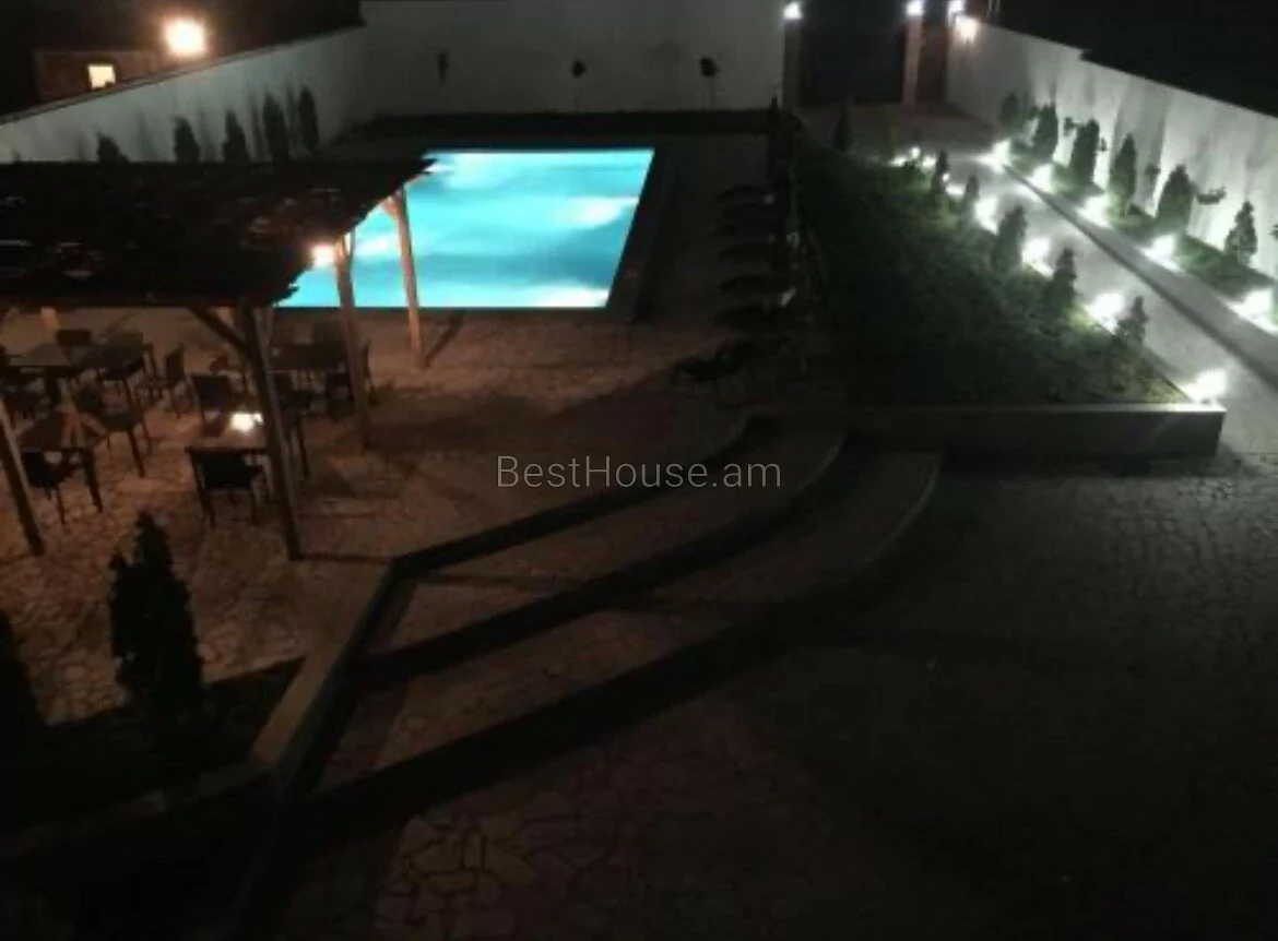Здание 3-х этажное, есть бассейн, парковка, а также подвал и кухня.