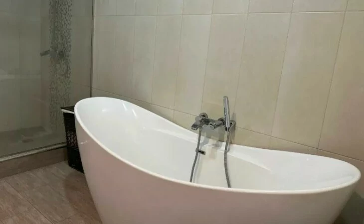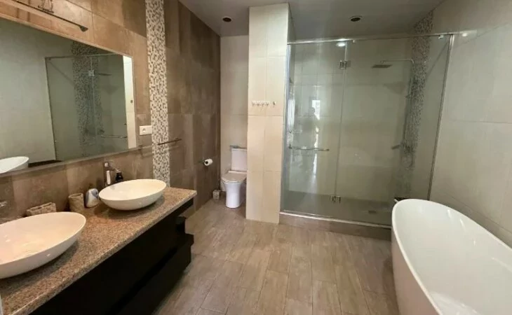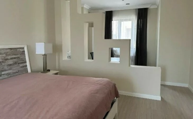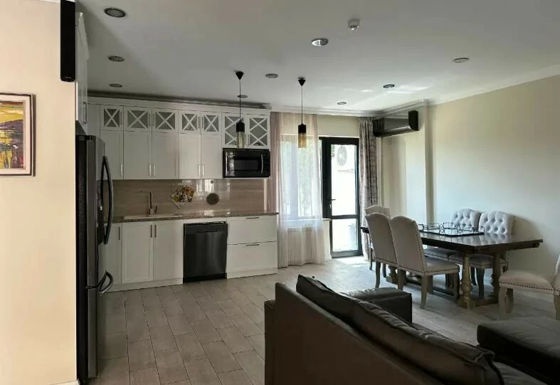 ...Сдается в аренду 3-этажный таунхаус с жилой площадью 195 квадратных метров и земельным участком 300 квадратных метров. Третий этаж — мансарда. В микрорайоне имеется система безопасности, освещение, установлен шлагбаум. Дом был полностью отремонтирован. Дом полностью меблирован и оборудован бытовой техникой. Установлены индивидуальные системы отопления и охлаждения, евроокна. Состоит из просторной и светлой гостиной, кухни-студии, 3 спален (количество спален легко трансформируется в 4), прачечной и 2 ванных комнат, открытых балконов. Ванные комнаты облицованы высококачественной плиткой и оборудованы сантехникой, в одной из которых установлена ванна. Комнаты светлые и комфортные. Дом огорожен, есть летняя беседка и ухоженный двор. Вся мебель и бытовая техника включены в стоимость.