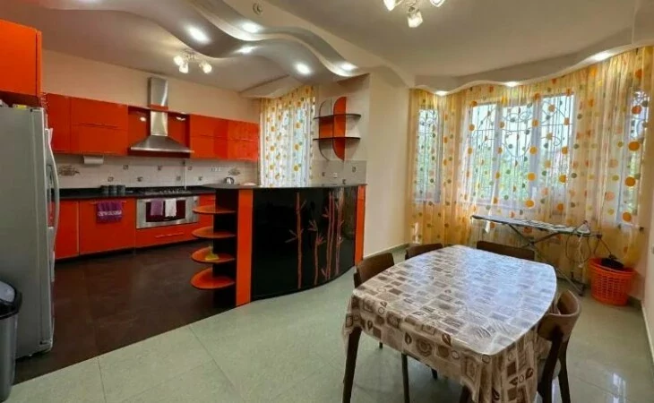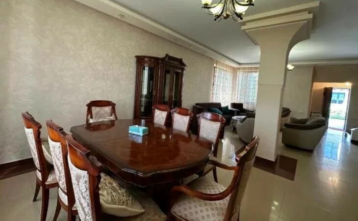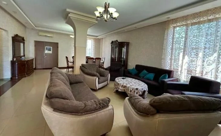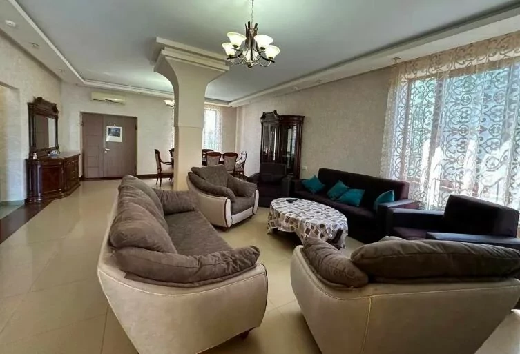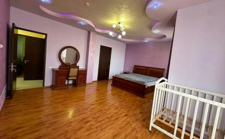 Сдается 6-комнатный каменный дом в районе Ваагн, недалеко от международной школы. Площадь земельного участка: 1100 кв/м. Здание: 450 кв/м Состоит из: Из гостиной Из кухни 4 спальни, каждая со своей гардеробной, 2 также с ванной комнатой. всего 5 ванных комнат С террасы - с 1 этажа Особняк имеет красивое внутреннее убранство. Отопление осуществляется по индивидуальной системе, также установлены кондиционеры. Есть красивый просторный сад с фруктовыми и декоративными деревьями. Во дворе также есть летняя кухня, мангал и беседка.