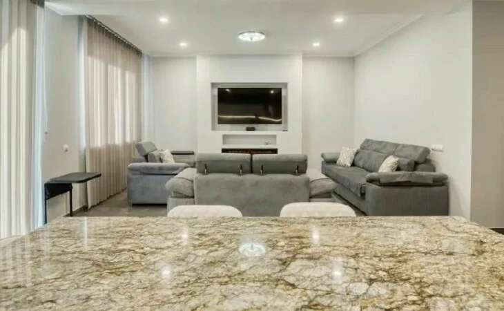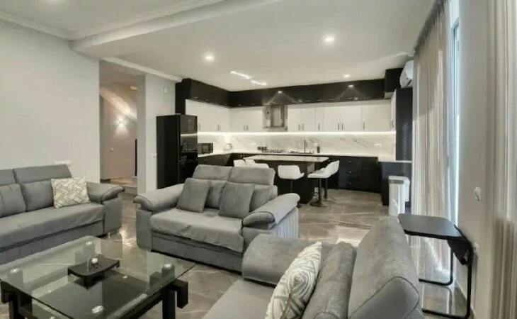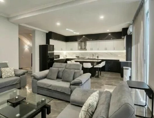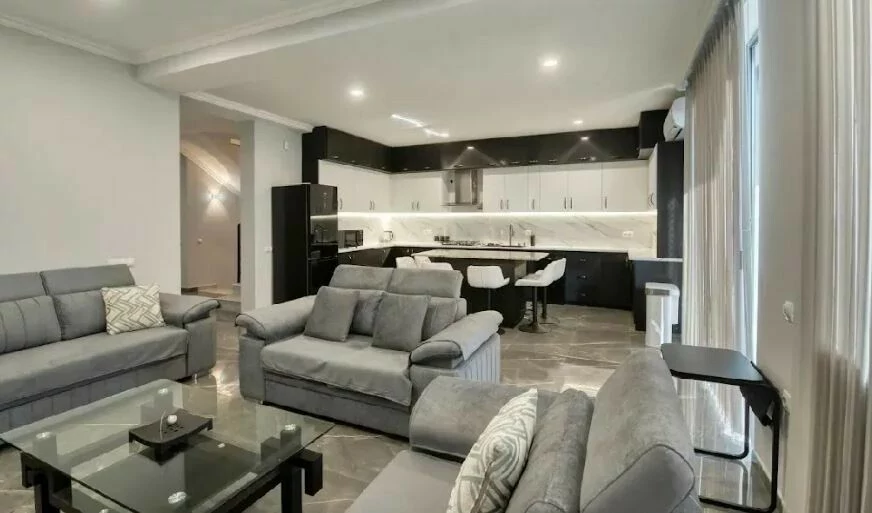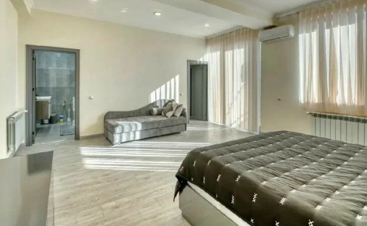 Новый дом сдается в долгосрочную аренду, полностью отремонтирован, имеет полы с подогревом, кондиционеры во всех комнатах, каждая спальня с собственной гардеробной и ванной комнатой. Мебель и бытовая техника совершенно новые, 2 открытых балкона. Отдельный двор.