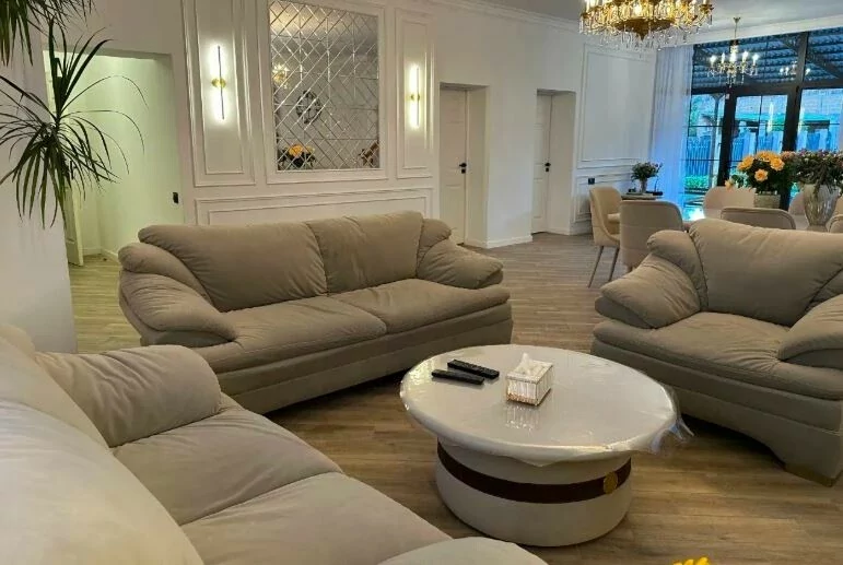 Сдаётся в долгосрочную аренду новый, роскошно отремонтированный дом в начале Багреванда, недалеко от Министерства обороны и Инженерного городка. Рядом находится супермаркет MG. В стоимость входят вся мебель, посуда, уход за двором и бассейном. Постоянное водоснабжение, газ, электричество, охрана.