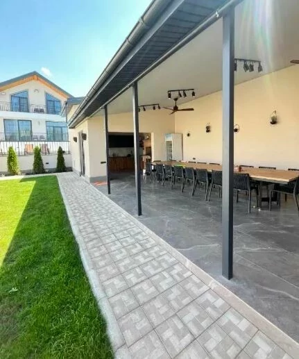 Сдаётся в долгосрочную аренду отдельно стоящий дом в Дзорахбюре, недалеко от центра «Вудс». Площадь участка составляет 500 кв. м. На участке расположены летняя кухня и беседка со всем необходимым оборудованием и мебелью, общей площадью 60 кв. м. На участке есть бассейн, санузел рядом с бассейном, раздевалка со всеми удобствами. Имеется отдельное техническое помещение и подвал, в котором подведены все коммуникации. Канализация, постоянная вода, газ и электричество. Установлена система солнечных панелей с годовой производительностью до 10 000 кВт. Дом двухэтажный: на первом этаже — общая столовая с собственной кухней, спальня и санузел, на втором этаже — 3 спальни, санузел и открытый балкон.