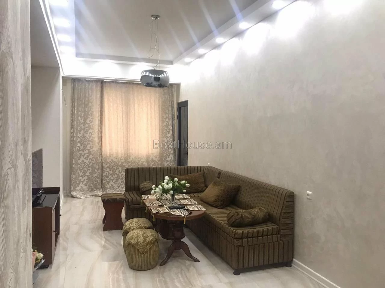 в элитном здание с охраной и со всеми удобствами на проспекте Комитас(5мин. пешком до метро барекамутюн)рядом много супермаркетов,под зданием кафе Дегустейшн ,рядом парк Мергелян. 2 комнаты,1 зал,кухня со всеми удобствами,ванная комната(стиральная машина,холодильник,ТВ и 5G Internet)