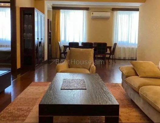 Сдается 3-х комнатная квартира площадью 110 кв.м на 5-ом этаже 5-ти этажного нового здания на проспекте Баграмяна. Квартира капитально отремонтирована, установлены окна со стеклопакетами, пол покрыт пресс-гранитом и ламинатом. Комнаты и кухня красиво меблированы и укомплектованы бытовой техникой и аксессуарами. Есть кабельное телевидение и интернет. Санузел облицован качественной плиткой и укомплектован сантехникой. Есть гардеробная. Поблизости расположены магазины, банки и развлекательные заведения.