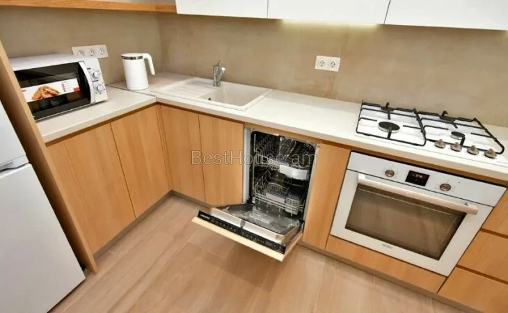 Очень светлая и уютная 3-комнатная квартира, полностью отремонтирована и меблирована. Есть открытый балкон и гардеробная. В здании 2 лифта, круглосуточная охрана и детская площадка. Вход в здание со двора. Он расположен на 15/16 этаже. Входная дверь в квартиру металлическая, высота потолков 3 м, 5 наружных окон. С индивидуальной системой отопления. В квартире есть природный газ, газовая плита, электроплита, холодильник, микроволновая печь, стиральная машина, посудомоечная машина, телевизор, кондиционер, интернет.
