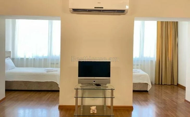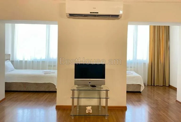 Сдается трехкомнатная, полностью отремонтированная, светлая и просторная квартира на Грачья Кочара, на 3 этаже 5-ти этажного дома. Квартира меблирована в современном стиле. Есть: Кондиционер, стиральная машина, холодильник, утюг, телевизор, газовая плита, система отопления Baxi. В квартире двухстороннее освещение, солнечно. Входная дверь железная, в подъезде установлен домофон. Доступен Wi-Fi.