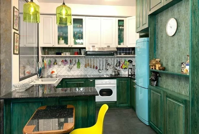 Компьютер, кофеварка DELONGI в зернах, посудомоечные и стиральные машины, холодильник, две электрические и газовые плиты (собираются отдельно), электрическая духовка, блендер, миксер, вся посуда, лестница, два пылесоса, система сушки внутри и снаружи, очень надежный внешний вид утюга. дверь, внутренняя мебель все дерево и дуб.