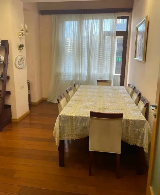 Сдается уютная и красивая 4-комнатная квартира в строящемся доме на улице Сундукяна, 184 квадратных метра, 3+ санузла, квартира укомплектована необходимой мебелью и техникой.