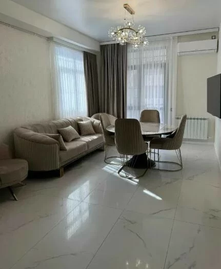 Сдается 3-комнатная квартира в новом доме бизнес-класса! В элитном районе, в пешей доступности от Каскада ~ 10/15 минут. 7-10 минут от торгового центра РИО. И собственно о самой квартире: Новый качественный ремонт, витражные окна, на полу керамическая плитка, полы с подогревом, натяжные потолки, новая мебель, оборудована всей необходимой бытовой техникой, вся бытовая техника новая, квартира не сдавалась, в ней еще НИКТО не проживал. Круглосуточная охрана, швейцар на 1 этаже.
