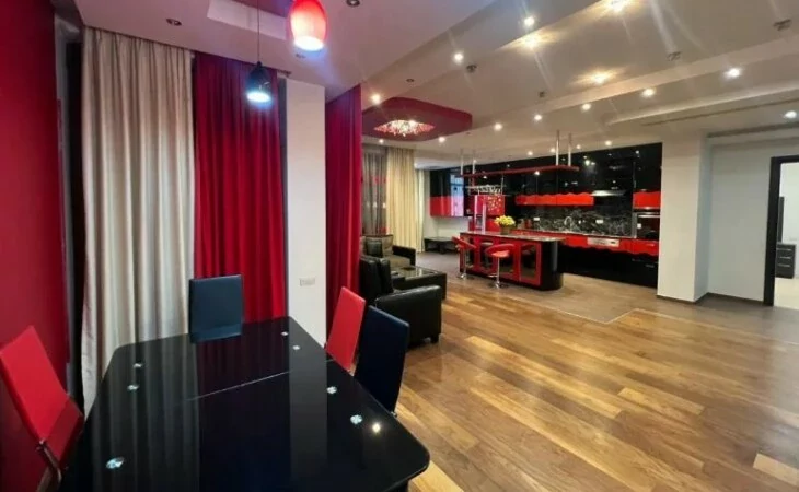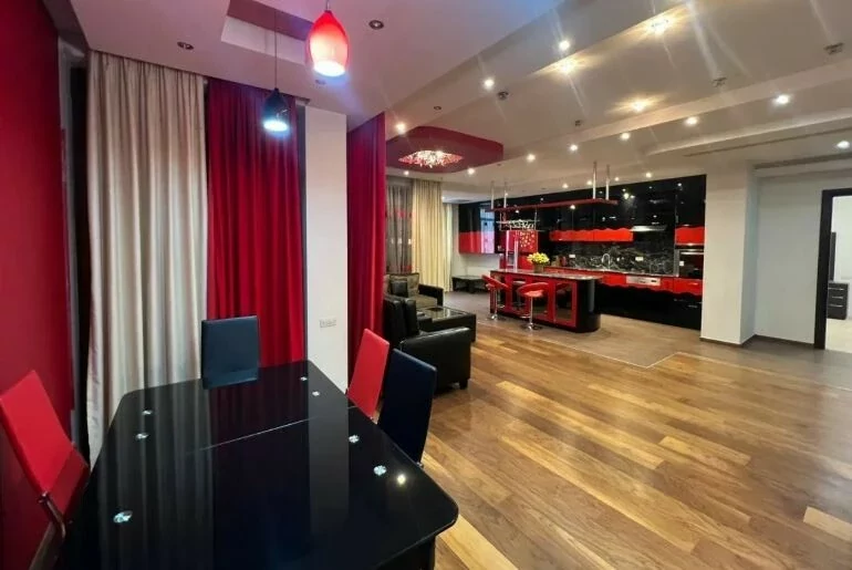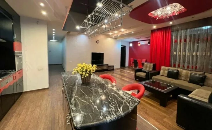 Сдаётся 4-комнатная квартира площадью 175 кв. м, расположенная на 4 этаже 9-этажного новостройки. В квартире выполнен качественный ремонт. Установлены железная входная дверь, евроокна, кондиционер. Отопление – автономный котел. Вода и газ подаются круглосуточно. Санузел облицован плиткой и оборудован сантехникой. Квартира укомплектована мебелью и техникой.