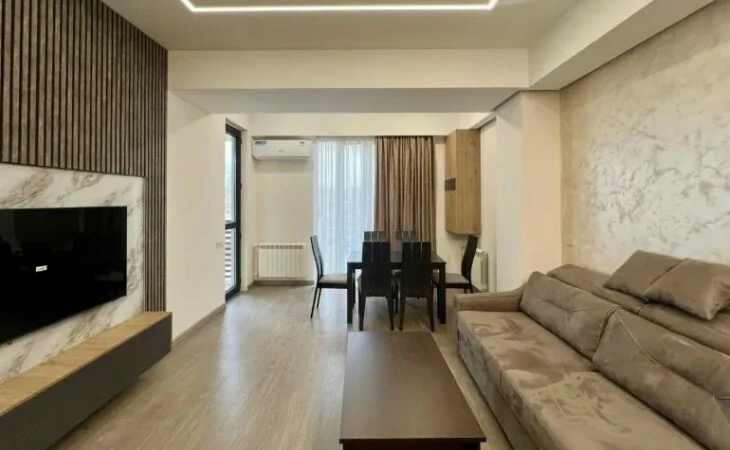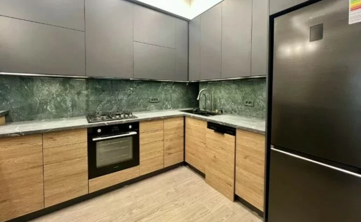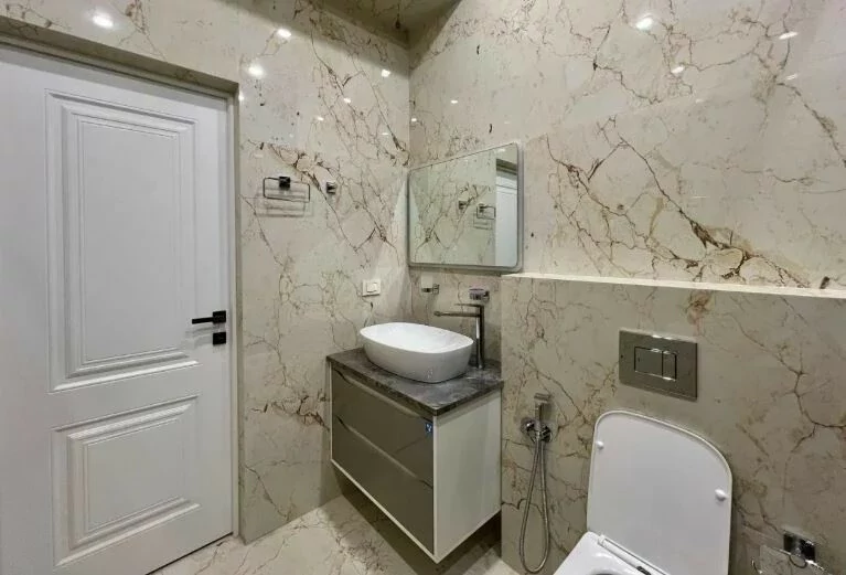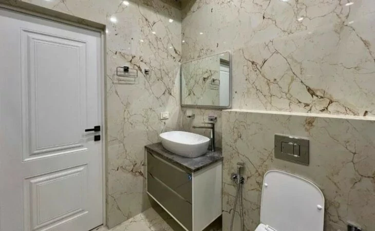 Квартира расположена на 10-м этаже 14-этажного новостроя. Площадь квартиры составляет 77 кв. м, высота потолков — 3,2 м. Квартира состоит из просторной гостиной, кухни, 2 спален, 1 ванной комнаты, 1 прачечной и 1 открытого балкона. В квартире выполнен качественный и элегантный ремонт с использованием дизайнерских решений. Индивидуальные системы отопления и кондиционирования. Квартира светлая, расположена на солнечной стороне. В доме есть крытый зелёный парк (4000 кв. м) и детская площадка, предназначенная только для жильцов дома. Дом находится под круглосуточным видеонаблюдением. Здание имеет сертификат энергоэффективности А+, сейсмостойкость 9+ баллов, 6-этажную парковку: 5 надземных и 1 подземный, бесплатную детскую комнату с присмотром сотрудников, игровую комнату, кафе, комнату для деловых переговоров.