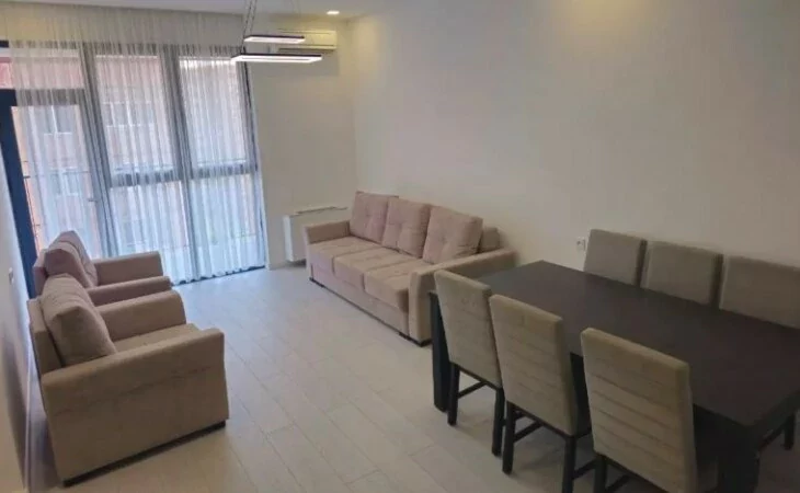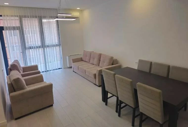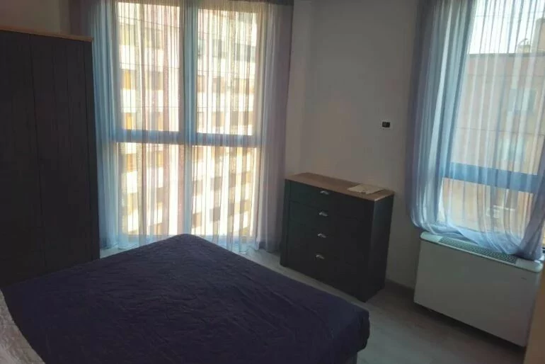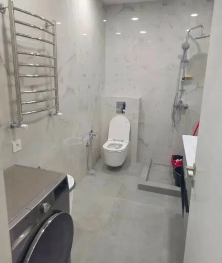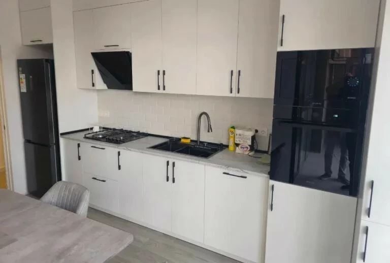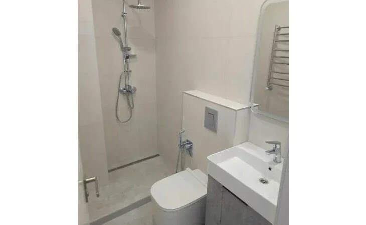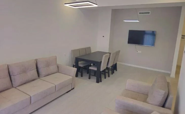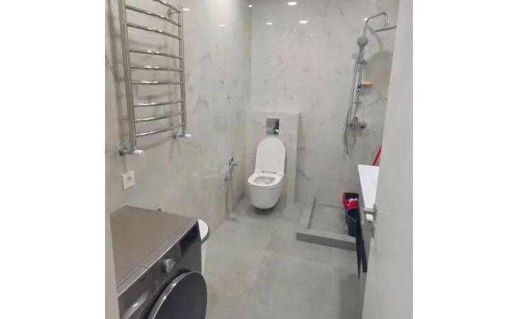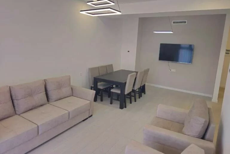 Сдаётся в аренду 3-комнатная квартира в новостройке, красивая, уютная и светлая, общей площадью 91 кв. м. Расположена на 9-м этаже современной и качественной новостройки, 16-этажного монолитного дома. В квартире выполнен дизайнерский ремонт с использованием высококачественных материалов. Вы будете первым жильцом. Квартира полностью нежилая. Кухня отдельная и оборудована всей необходимой бытовой техникой. На полу – качественный европейский ламинат и плитка. В квартире 2 санузла: * большая и удобная общая ванная комната * второй санузел с доступом прямо из главной спальни Ванные комнаты отделаны плиткой и оснащены всей необходимой сантехникой. В квартире есть открытый балкон, на который можно выйти как из кухни, так и из гостиной. В квартире есть все коммуникации. Квартира меблирована и оборудована необходимой бытовой техникой: * Индивидуальная система отопления * Кондиционер * Микроволновая печь * Газовая плита * Холодильник * Стиральная машина * Телевизор * Чайник * Посуда * Постельное белье Дом удобно расположен, рядом находятся: * Супермаркеты * Банки * Магазины * Детский сад * Школа * Парки и зеленые зоны