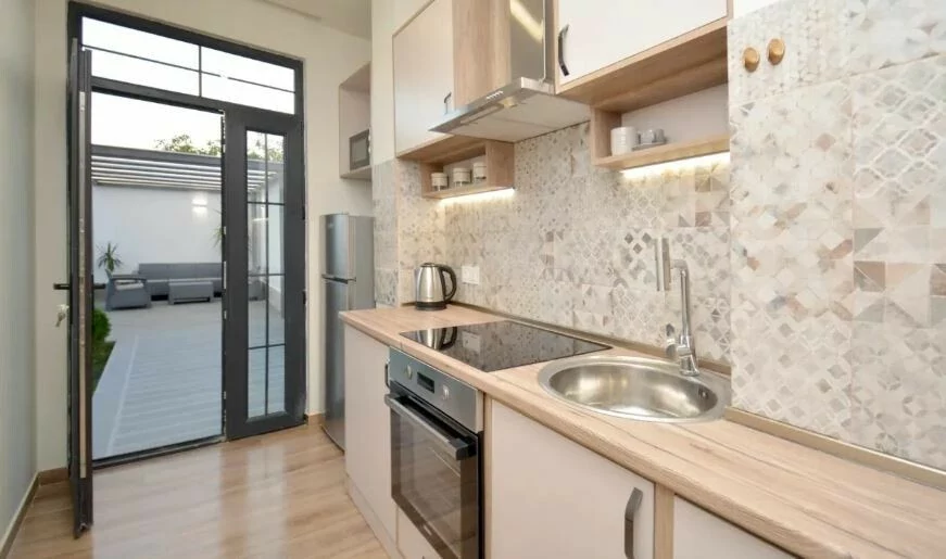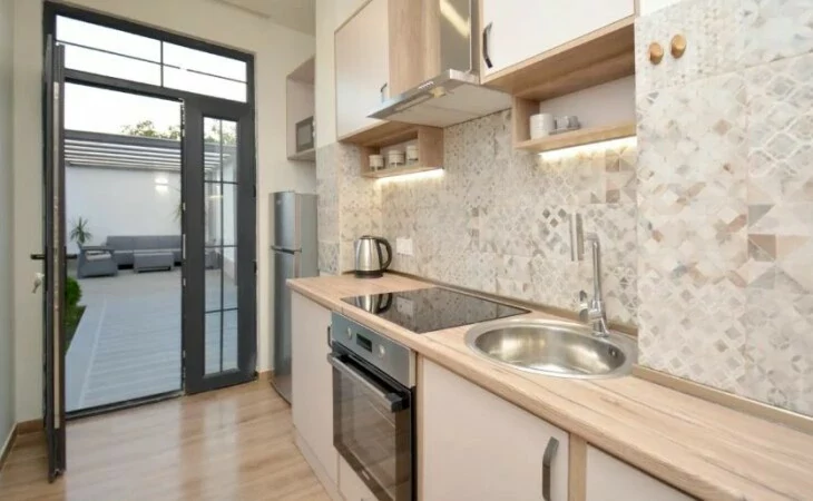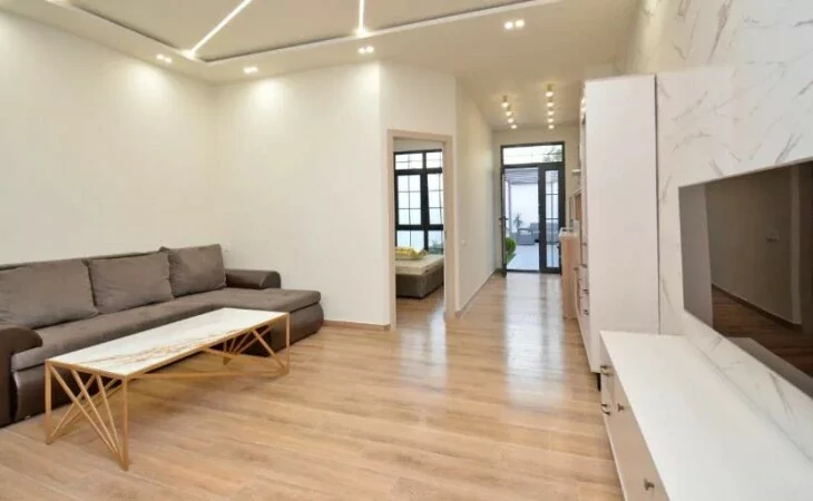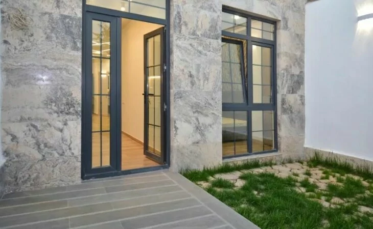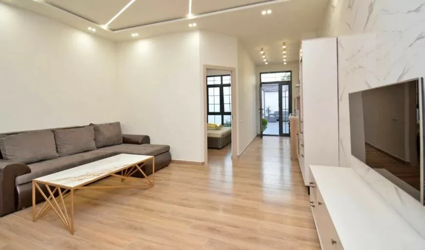 Сдаётся в аренду стильная, красивая квартира с новым ремонтом, пока не заселённая, со своим зелёным садом, вечнозелёными растениями, садовой мебелью. Общая площадь квартиры 100 кв. м. В квартире индивидуальное отопление, тёплые полы, кондиционер, современная мебель и бытовая техника. Квартира расположена на улице Каленца, рядом со станцией метро «Дружба», на 1 этаже нового четырёхэтажного дома.