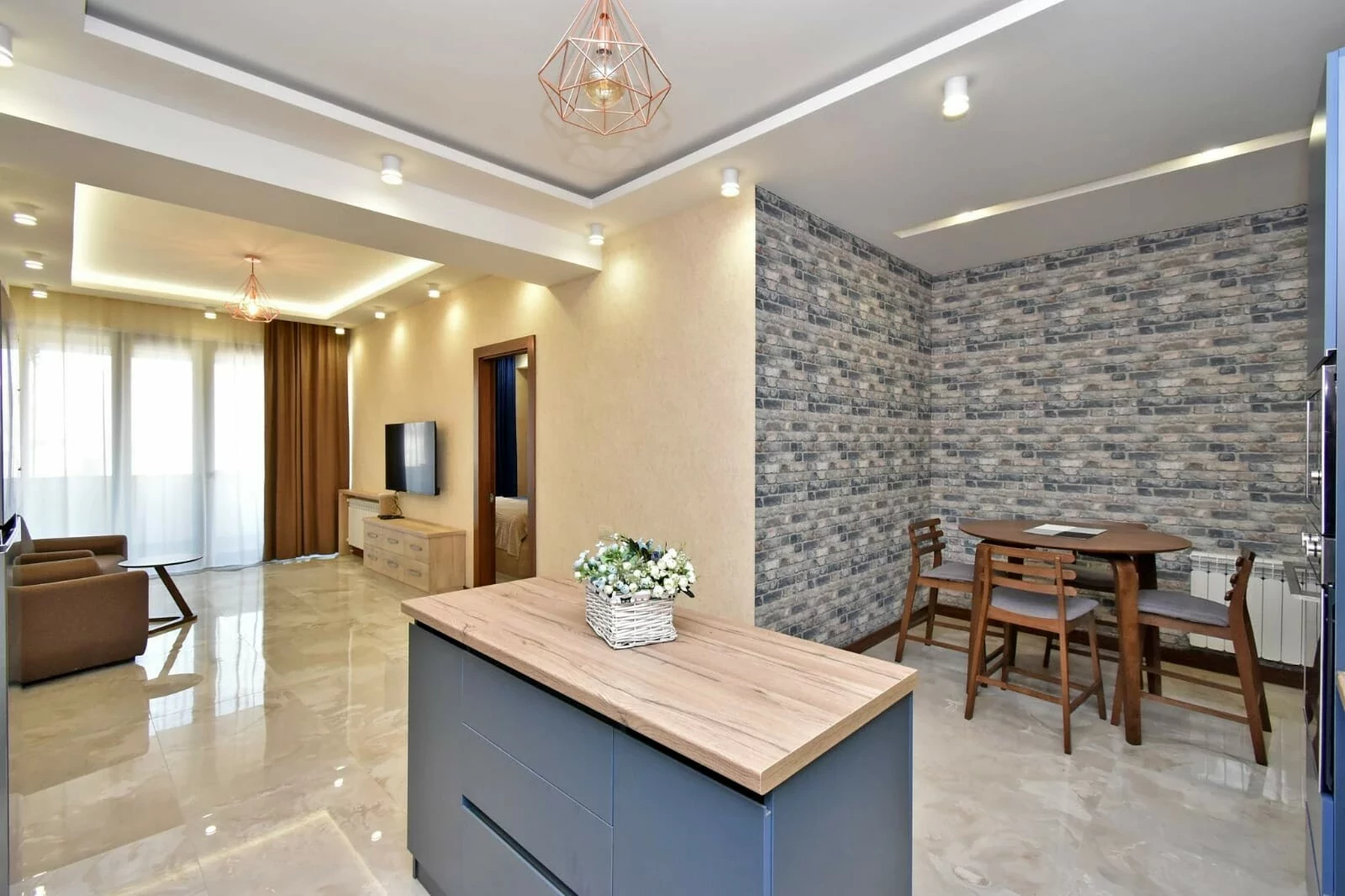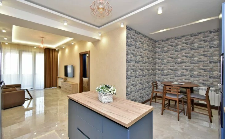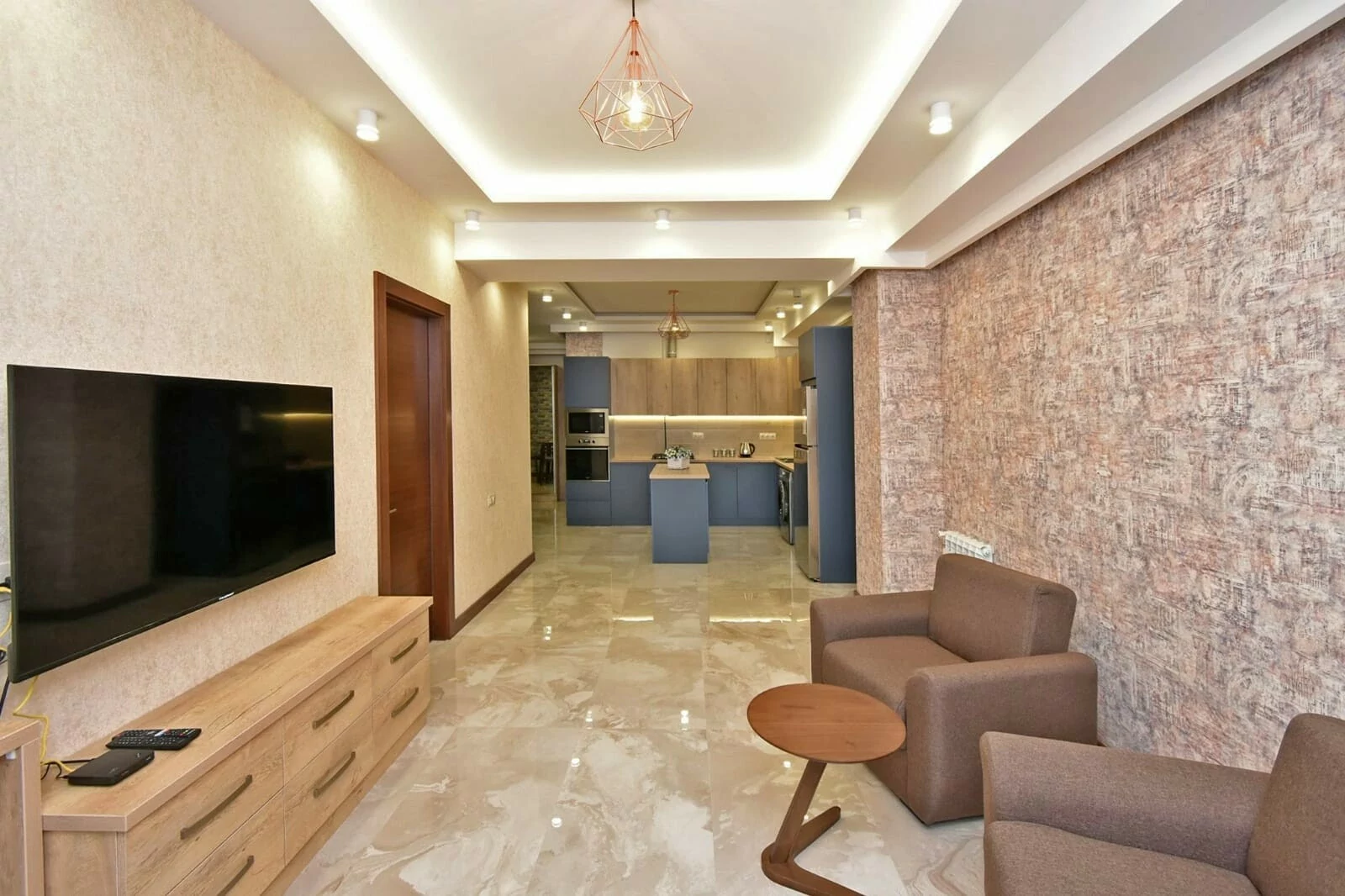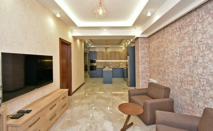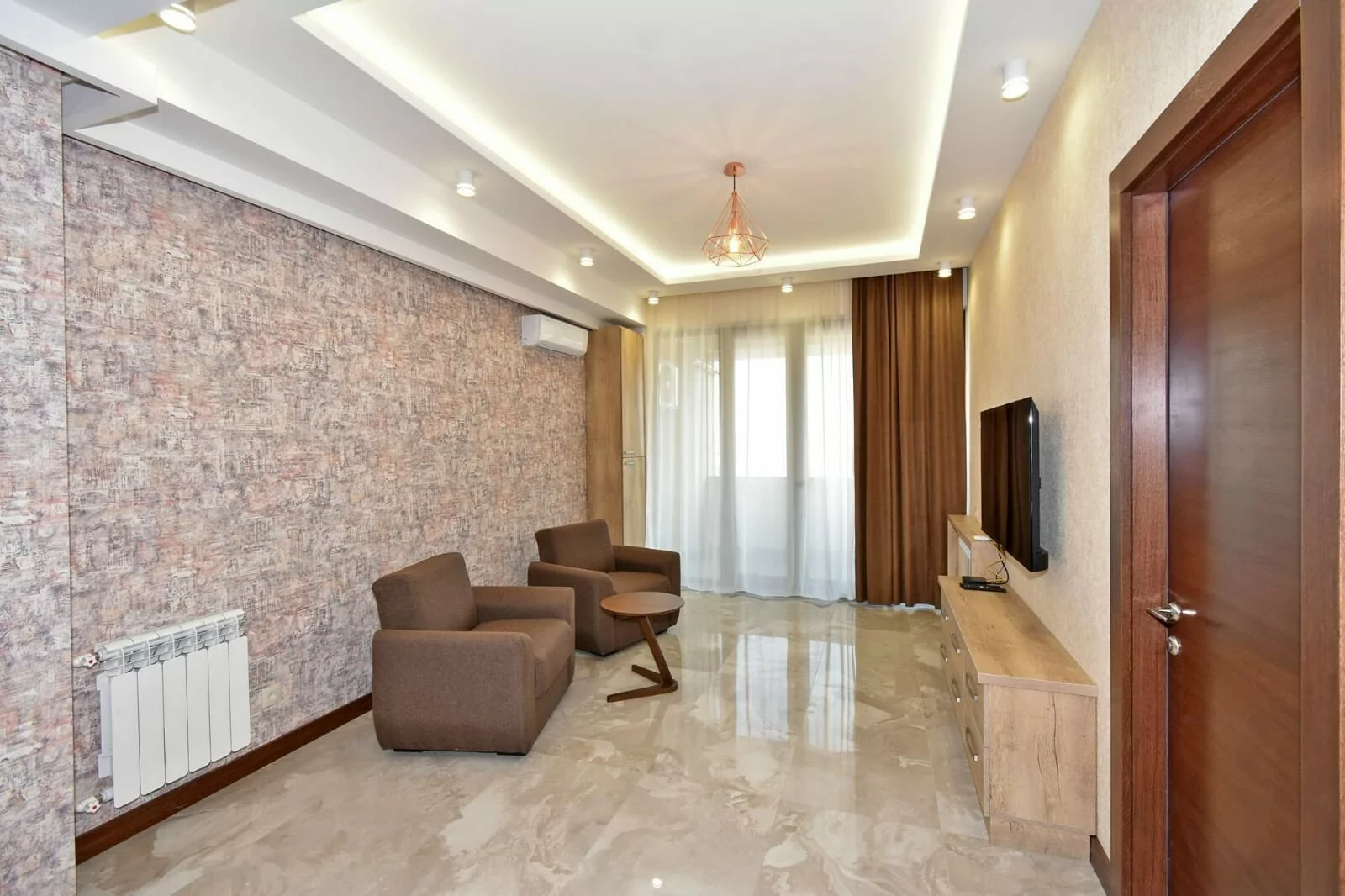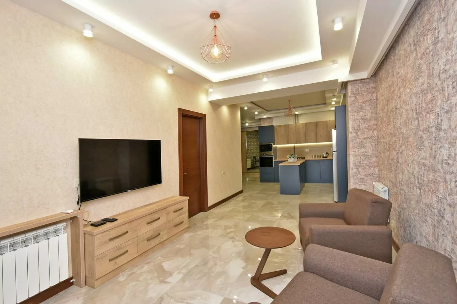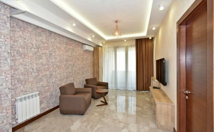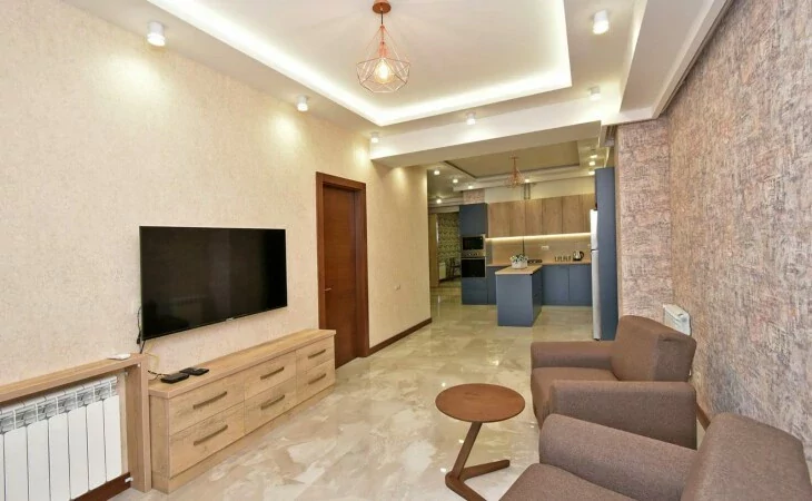 ...Сдаётся 2-комнатная квартира площадью 70 кв. м на улице Арама Хачатуряна, на 9-м этаже 11-этажного новостройки. Квартира полностью отремонтирована, имеет индивидуальную систему отопления, евроокна, полы покрыты ламинатом и плиткой. Ванная комната отделана плиткой и оборудована сантехникой, установлена ​​душевая кабина. Кухня и комнаты красиво и стильно обставлены, оснащены бытовой техникой и всеми необходимыми принадлежностями. В доме есть лифт, домофон. Рядом находятся магазины, отделения банков и остановки общественного транспорта.