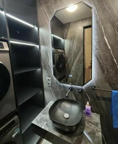 В квартире есть все необходимые коммуникации: • Постоянное наличие горячей и холодной воды • Отопление и кондиционирование воздуха • 2 телевизора, интернет Ucom, Wi-Fi • Холодильник, стиральная машина-автомат, сушилка, посудомоечная машина, духовка • 2 санузла • Посуда, постельное белье • Открытый балкон, железная дверь • Детская площадка, открытая парковка