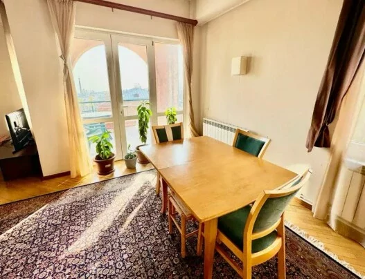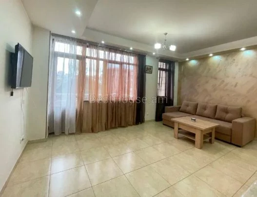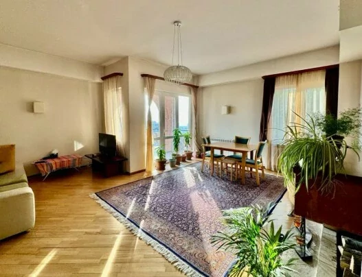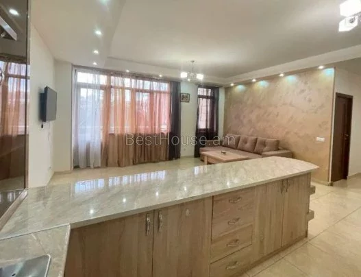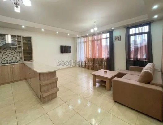 Квартира в элитном районе Хувайсай Рэй (Арабкир) площадью 87 кв. м, на 5 этаже нового многоквартирного дома из туфа, в очень хорошем состоянии, светлая, имеет 1 спальню, 2 ванные комнаты, 1 основной балкон с видом на гору Арарат и 1 небольшой балкон около кухни.