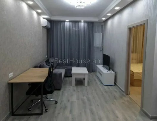 Сдаётся современная 2-комнатная квартира на улице Ленинградян, на 14 этаже нового монолитного дома. Общая площадь квартиры составляет 54 квадратных метра, высота потолков — 3 метра.