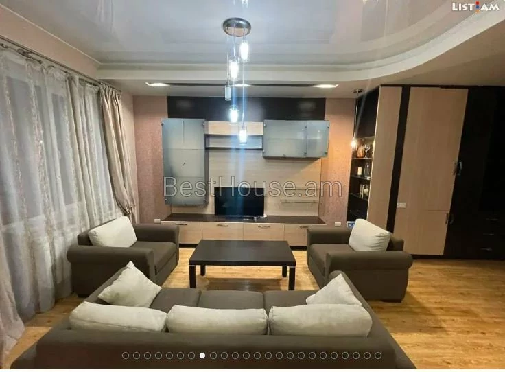 Сдается 4-комнатная квартира с дизайнерским ремонтом площадью 125 квадратных метров на улице Бузанда.В квартире 2 санузла, имеется необходимое имущество и техника, в квартире есть открытый балкон с прекрасным видом. Входная дверь железная, пол ламинат.