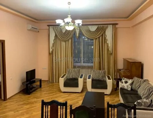 Квартира отремонтирована и оснащена необходимым имуществом и оборудованием. Кухня и ванная комната выложены плиткой. Отопление осуществляется газовым котлом (Baxi). В квартире 2 спальни, 1 кабинет, 1 гостиная и большая кухня. Открытый балкон выходит на улицу Амиряна, а со стороны двора, под окном, расположено большое футбольное поле. Здание находится рядом с супермаркетами САС и Нор Зовк. Он находится недалеко от улицы Месропа Маштоца, а также улиц Сарьяна и Пушкина, на которых полно ресторанов, пабов и других развлекательных клубов. Парк Дианы Абгар (Малибу) тоже неподалеку, 3 минуты пешком. Вы также можете дойти до площади Республики за 9 минут и до Оперного театра за 11 минут. Тренажерный зал Gold's находится в 2 минутах ходьбы.