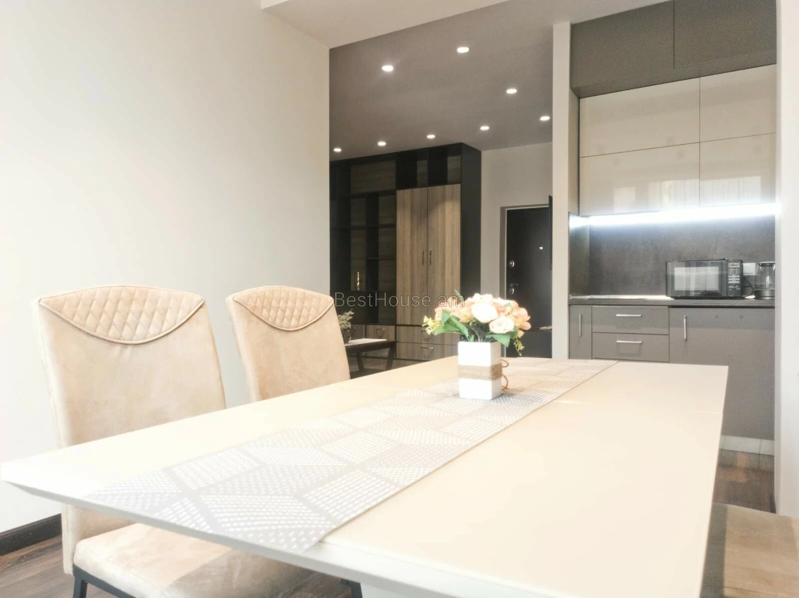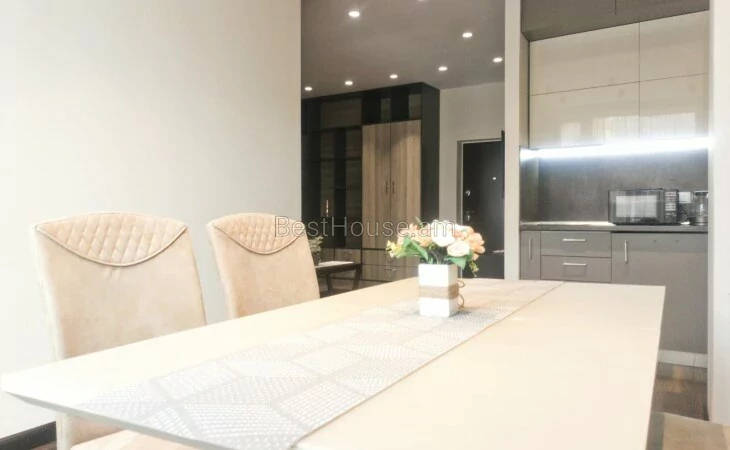 Сдается 2-комнатная квартира с ремонтом в красивом дизайнерском стиле на улице Бузанди. Квартира оборудована необходимой техникой.