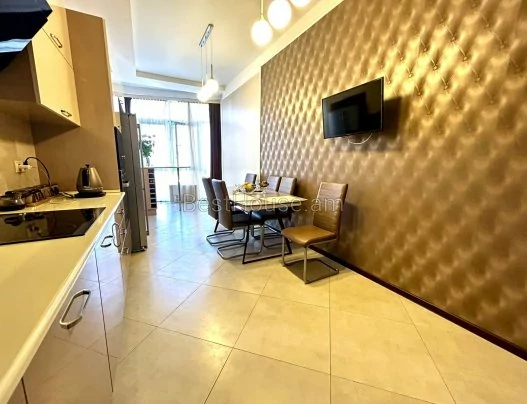 Сдается 3-х комнатная, красивая, просторная квартира с евроремонтом. В квартире есть все необходимые коммуникации: • Постоянная горячая и холодная вода, • Газ, Газовая плита, Газовая духовка, • Микроволновая печь, • Централизованная система отопления, 2 кондиционера, • 2 телевизора, Интернет Wi-Fi, • Автоматическая стиральная машина, посудомоечная машина, • 2 ванные комнаты, холодильник, посуда, постельное белье. • Железная дверь, домофон, открытый балкон.