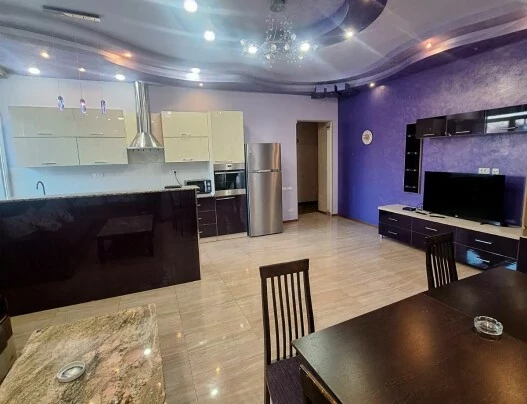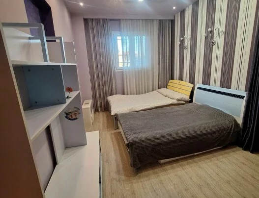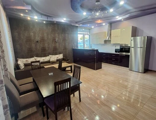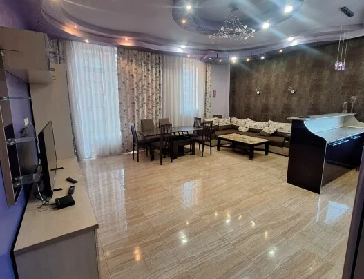 Сдается комфортабельная 4-комнатная квартира в строящемся доме по улице Аргишти, 108 квадратных метров, квартира укомплектована необходимым имуществом и бытовой техникой.