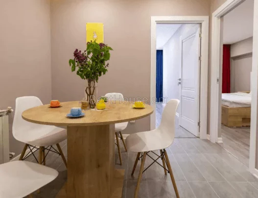 В центре Еревана, в 500 метрах от Площади Республики, на улице Арами, сдаётся в долгосрочную аренду полностью отремонтированная трёхкомнатная квартира и парковочное место в подвале здания. Квартира расположена на 8 этаже новостройки. Круглосуточное водоснабжение и электроснабжение, прохладу обеспечивают кондиционеры. Мебель итальянского бренда, в доме есть Wi-Fi, спутниковое телевидение. Планировка квартиры: два санузла, студия (кухня и гостиная объединены), две спальни и большой балкон с видом на сад. Рядом находятся больница, кафе, парк и школа.