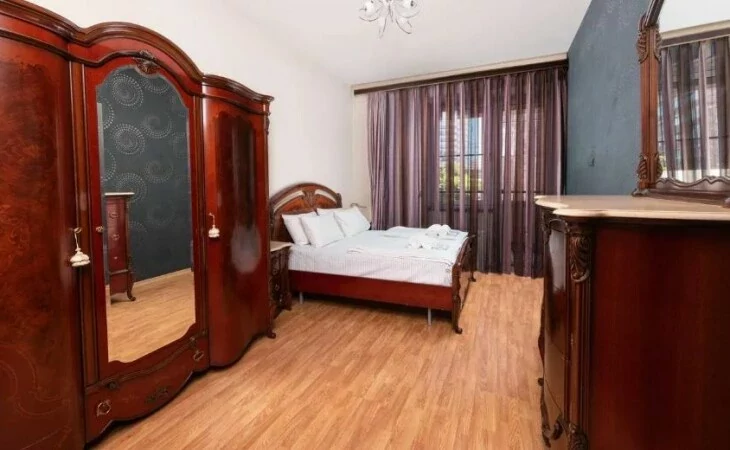 Сдаётся в аренду 3-комнатная, уютная и просторная квартира площадью 175 кв.м., расположенная на улице Амиряна, на 3-м этаже 12-этажного новостройки. Квартира полностью отремонтирована, обеспечена всеми коммуникациями и укомплектована необходимой бытовой техникой. Ванная комната отделана плиткой и оборудована сантехникой. В квартире есть открытые балконы с прекрасным видом. В доме есть качественные лифты и круглосуточная охрана.