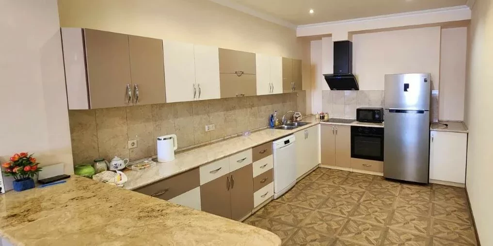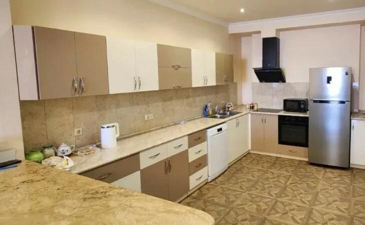 Сдаётся в аренду 4-комнатная квартира с евроремонтом, светлая и просторная, в новом элитном доме рядом с парком Малибу. В доме 2 лифта. ==== (3 комнаты, 17/14 этаж, 102 кв. м) ==== • Индивидуальное отопление, • Электрическая духовка, микроволновая печь, • Телевизор, интернет Wi-Fi, прачечная, • Холодильник, стиральная машина-автомат, • 1 санузел, посуда, постельное белье, Круглосуточная охрана, • Открытый балкон, прекрасный вид на Мать-Армению, • Витражи, железная дверь, домофон.