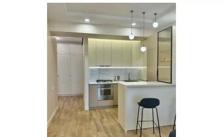 Сдаётся в аренду недавно отремонтированная квартира в новом доме. Квартира полностью меблирована качественной мебелью и техникой. Полы с подогревом. Есть посуда, постельное бельё. Также есть посудомоечная и стиральная машины с сушкой. В доме круглосуточная охрана и служба уборки. В квартире есть открытый балкон с прекрасным видом.