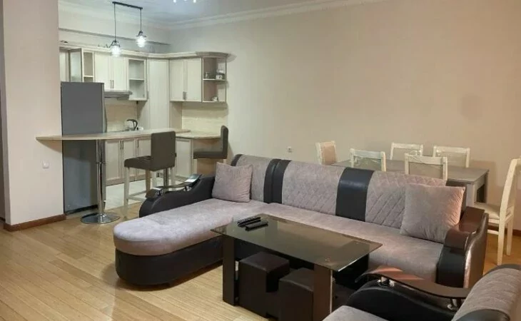 Сдается в аренду двухкомнатная квартира в Ереване, административный район Кентрон, улица Бузанд, площадь 72 кв. м, высота потолков 3,2 м, на 3-м этаже 10-этажного здания, отремонтирована и не заселена. Квартира отапливается индивидуальной системой. Есть кондиционер, открытый балкон. Квартира сдается с необходимой мебелью и бытовой техникой. Также предоставляются посуда и постельное белье. В здании работает охрана.