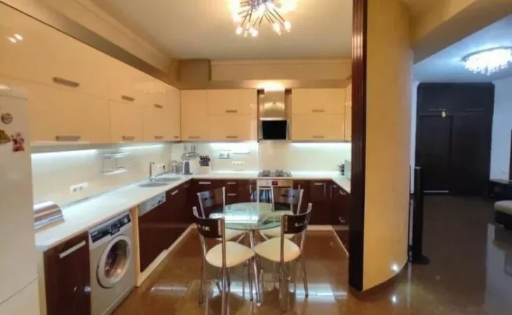 Сдается в аренду трехкомнатная квартира площадью 102,3 квадратных метра на 11-м этаже нового 12-этажного здания на улице Бузанд.