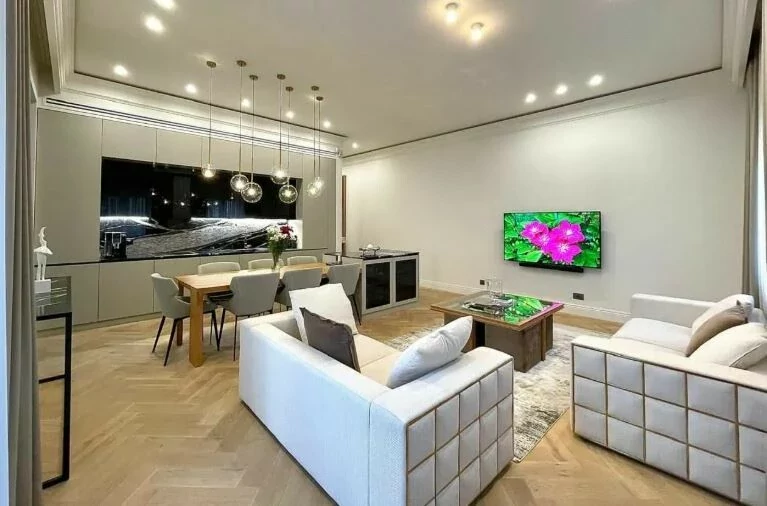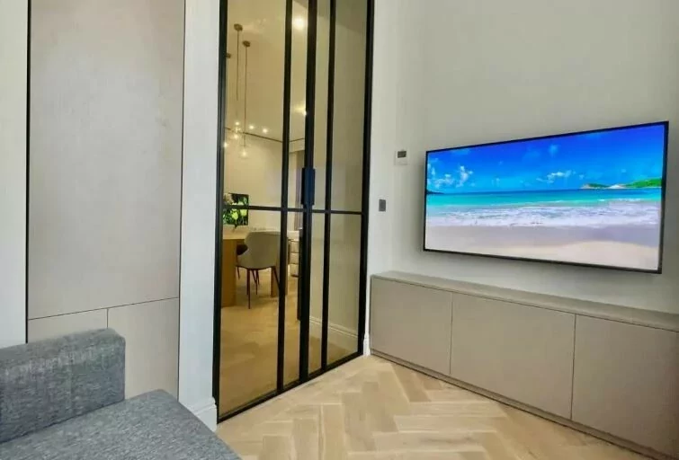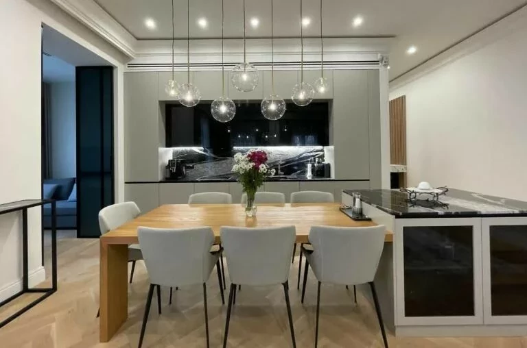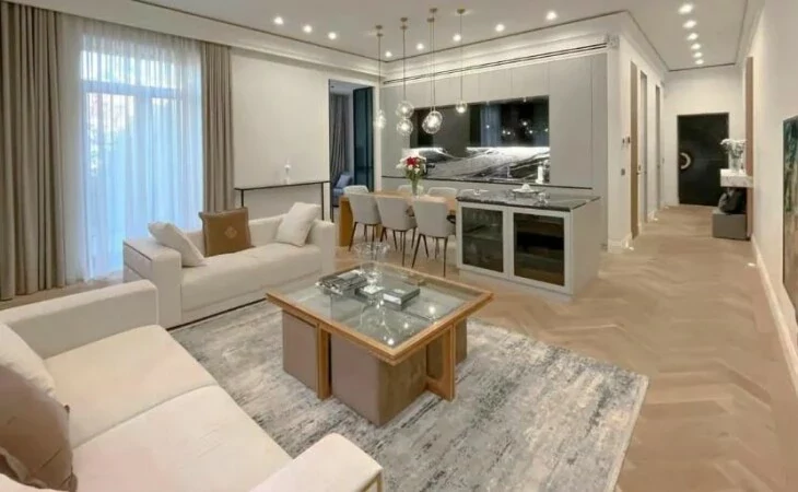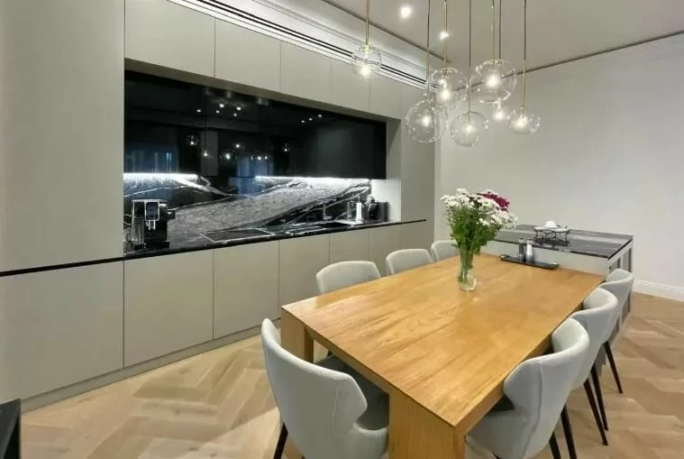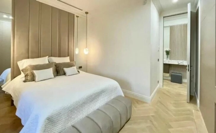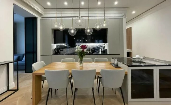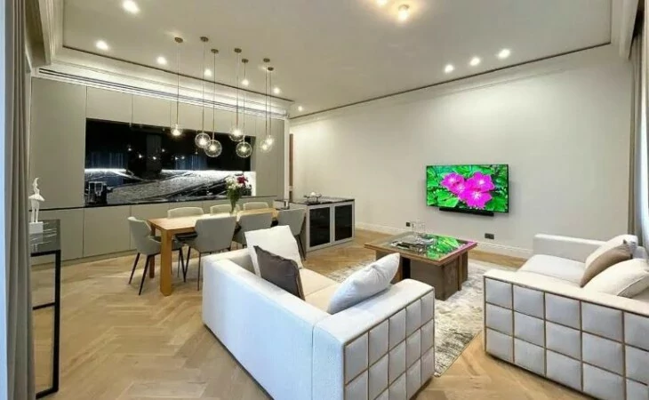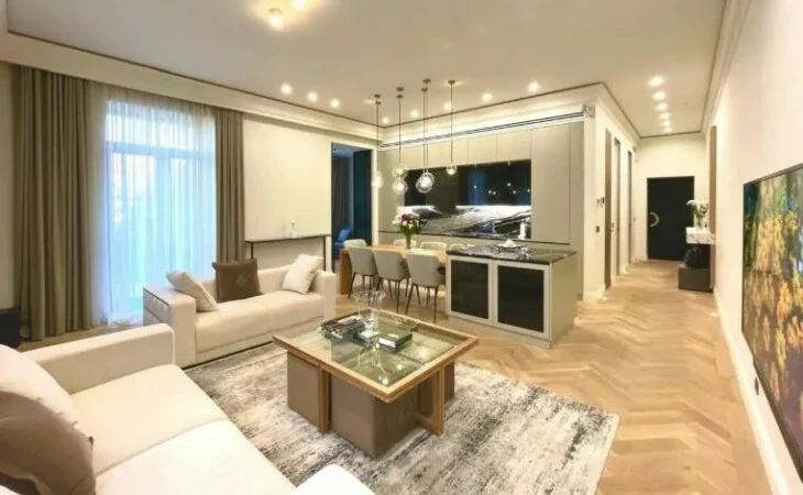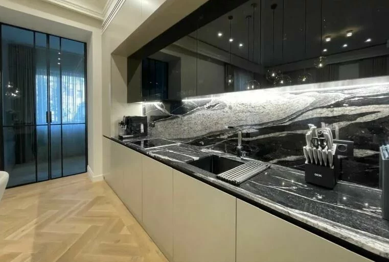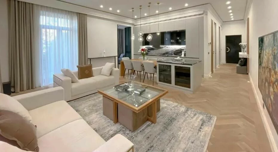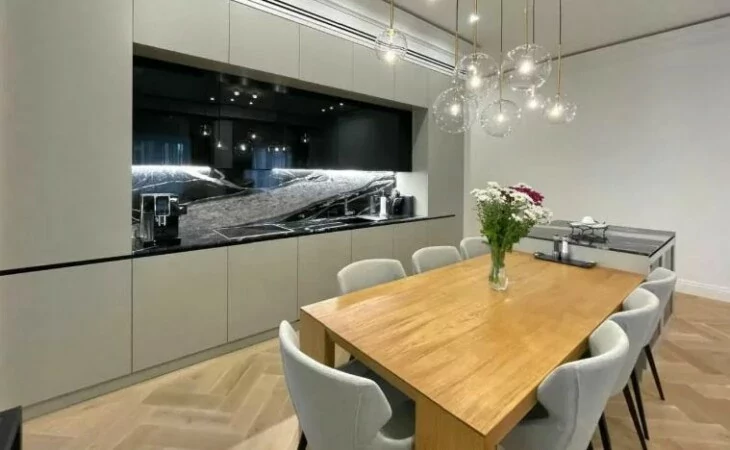 Сдается в аренду 3-комнатная квартира на улице Московская, на 3-м этаже каменного здания в сталинском стиле. Квартира отремонтирована в современном стиле. В ней есть просторная гостиная, совмещенная с кухней (студия), главная спальня с ванной комнатой и гардеробной, комната отдыха и просторный открытый балкон. Кухня оборудована высококачественной мебелью (дуб) и бытовой техникой (Miele). Пол выполнен из хорватского дуба. Отопление и кондиционирование квартиры осуществляется централизованной системой (Mitsubishi), а также индивидуальной системой отопления (Viesmann). Имеется система безопасности.