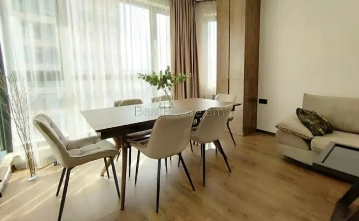 Сдается в долгосрочную аренду 2-комнатная квартира на улице Эребуни, возле ТЦ Эребуни, на 8 этаже новостройки. Есть газ, постоянная холодная и горячая вода, квартира отапливается индивидуальной системой отопления. Полы покрыты ламинатом, ванная комната выложена плиткой. Евроокна имеют шторы и витражи, что обеспечивает освещение, а также солнечное и имеет открытый подсобный балкон. Квартира полностью отремонтирована и меблирована, расположена недалеко от автобусной остановки. Это тихое здание.