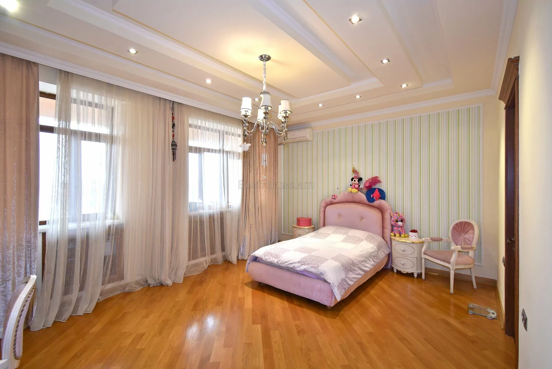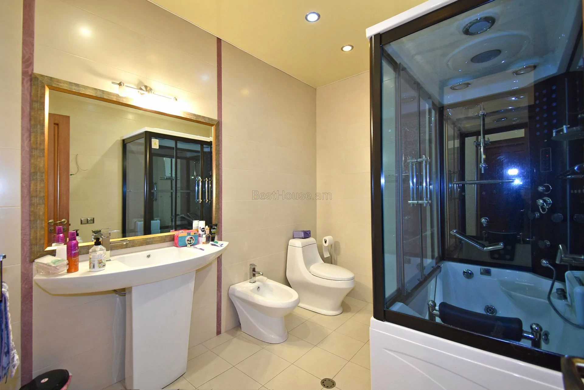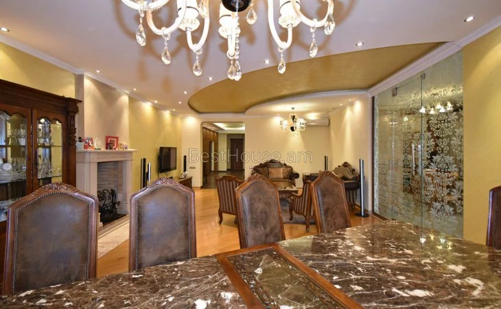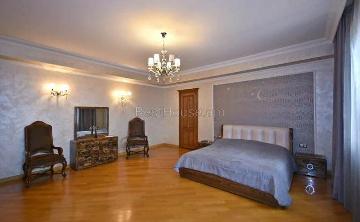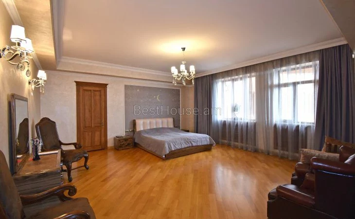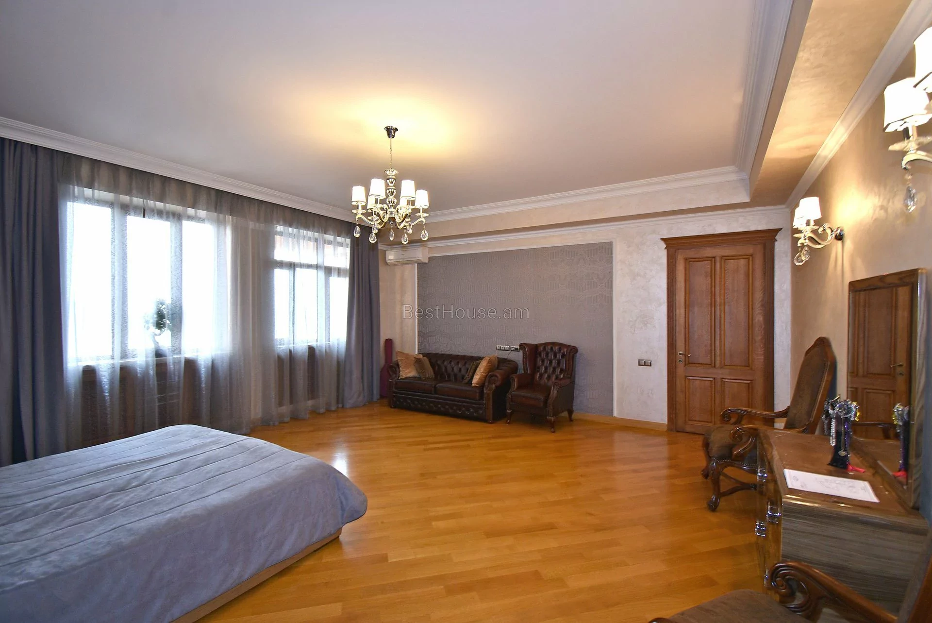 В аренду предлагается роскошная 5 комнатная квартира-пентхаус на перекрестке улиц Амирян и Закян, в двух шагах от Площади Республики. Квартира занимает 360 кв.м. на последнем этаже 10 этажной новостройки. Выполнен капитальный ремонт. Проведена централизованная система отопления. Окна - со стеклопакетами и с деревянными рамами. Пол - пресс гранит и паркет. Кухня и все 5 санузлов отделаны кафельной плиткой. Санузлы оснащены сантехникой. Квартира полностью обставлена качественной мебелью и укомплектована всей необходимой бытовой техникой. Есть 4 открытых балкона. Предусмотрена подземная парковка. Поблизости расположены кафе, рестораны, супермаркет "САС", банковские отделения, фирменные магазины.