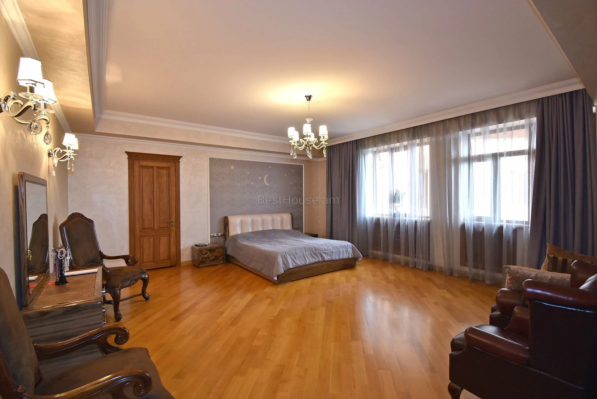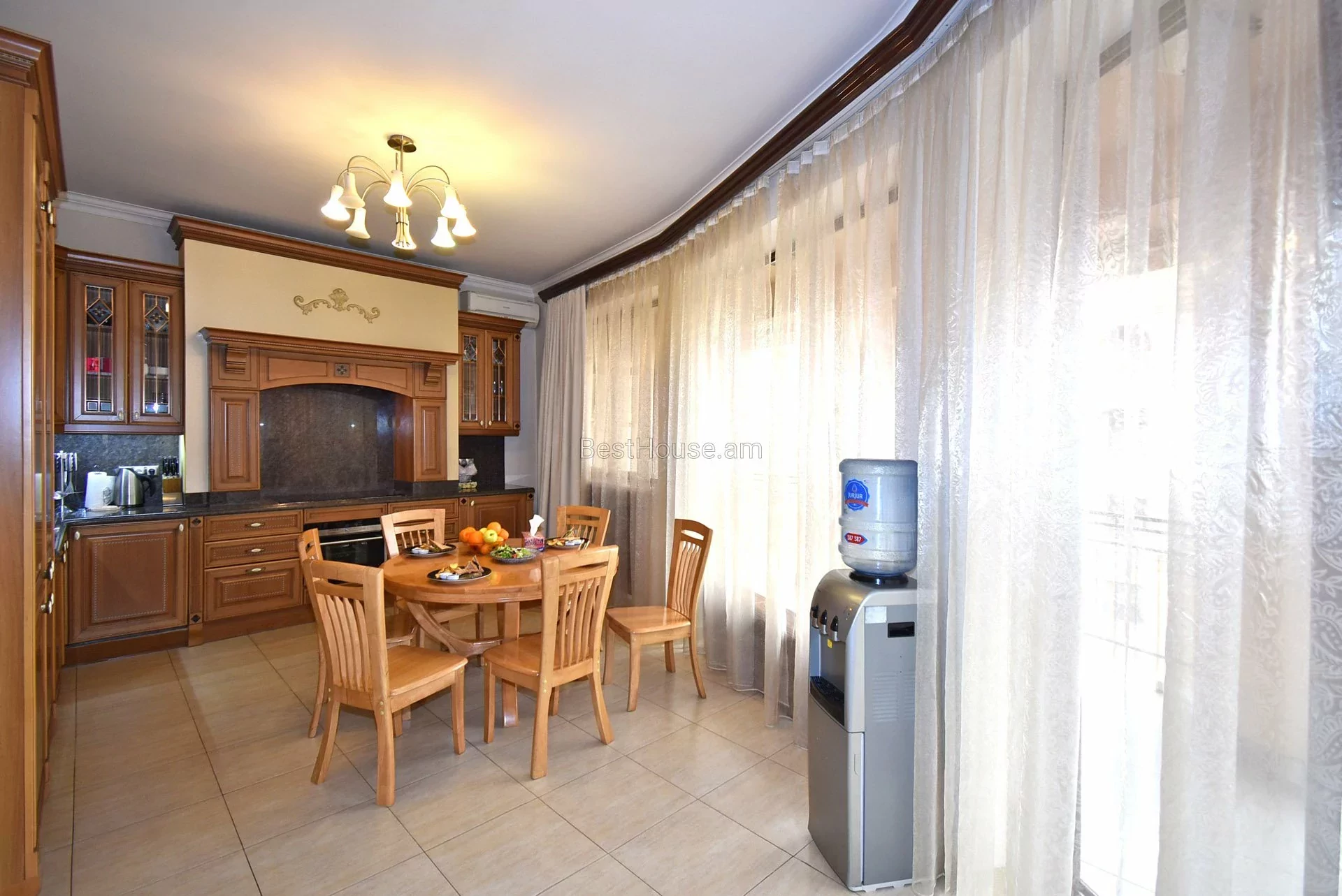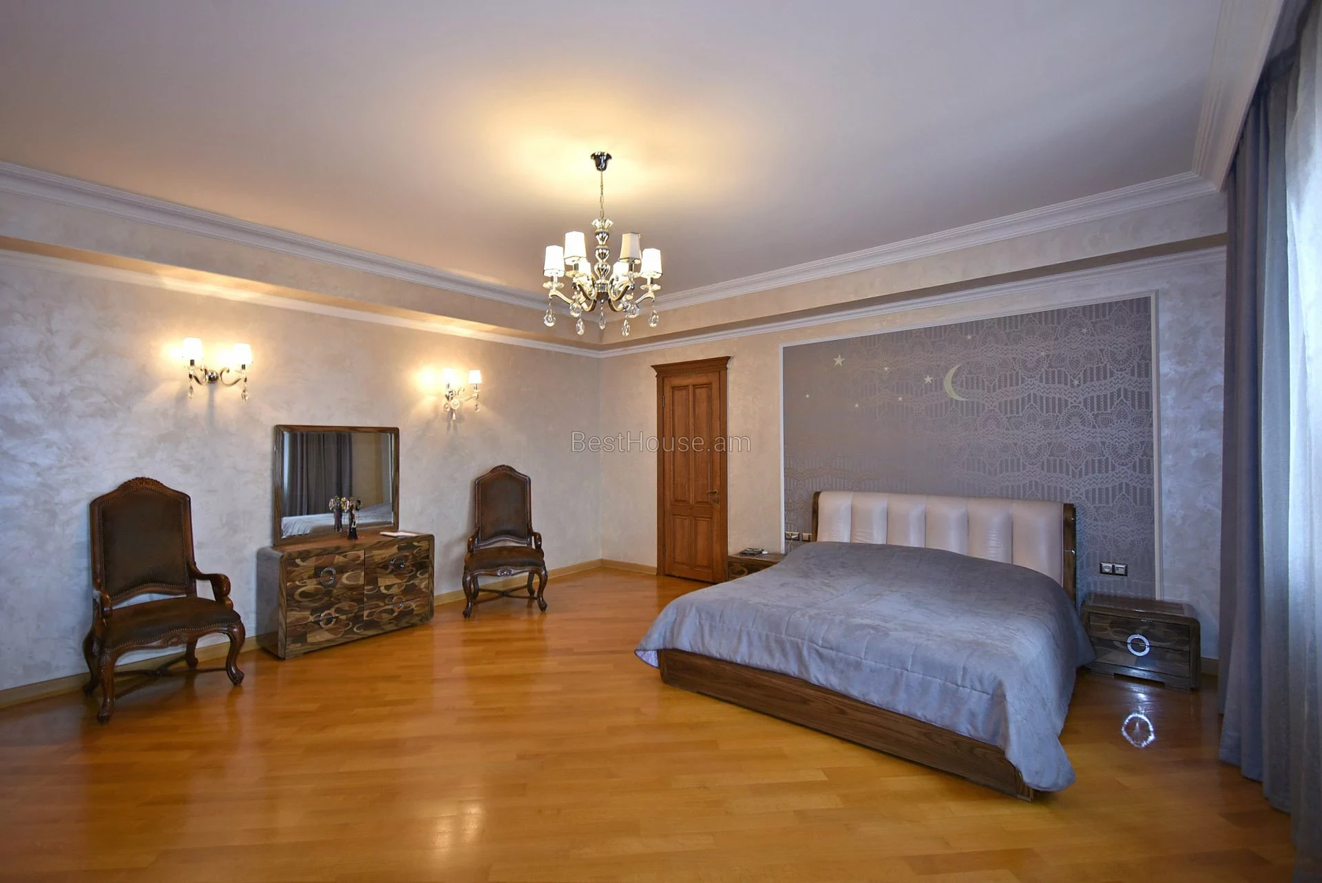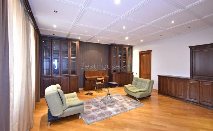 В аренду предлагается роскошная 5 комнатная квартира-пентхаус на перекрестке улиц Амирян и Закян, в двух шагах от Площади Республики. Квартира занимает 360 кв.м. на последнем этаже 10 этажной новостройки. Выполнен капитальный ремонт. Проведена централизованная система отопления. Окна - со стеклопакетами и с деревянными рамами. Пол - пресс гранит и паркет. Кухня и все 5 санузлов отделаны кафельной плиткой. Санузлы оснащены сантехникой. Квартира полностью обставлена качественной мебелью и укомплектована всей необходимой бытовой техникой. Есть 4 открытых балкона. Предусмотрена подземная парковка. Поблизости расположены кафе, рестораны, супермаркет "САС", банковские отделения, фирменные магазины.