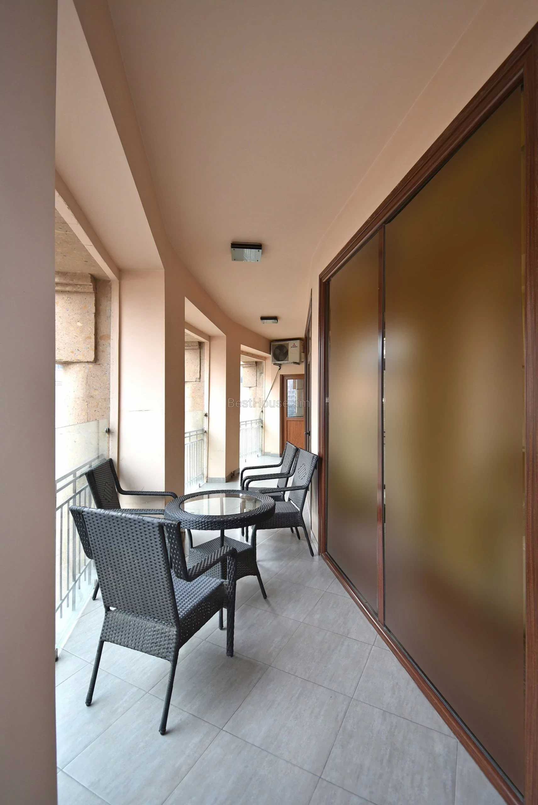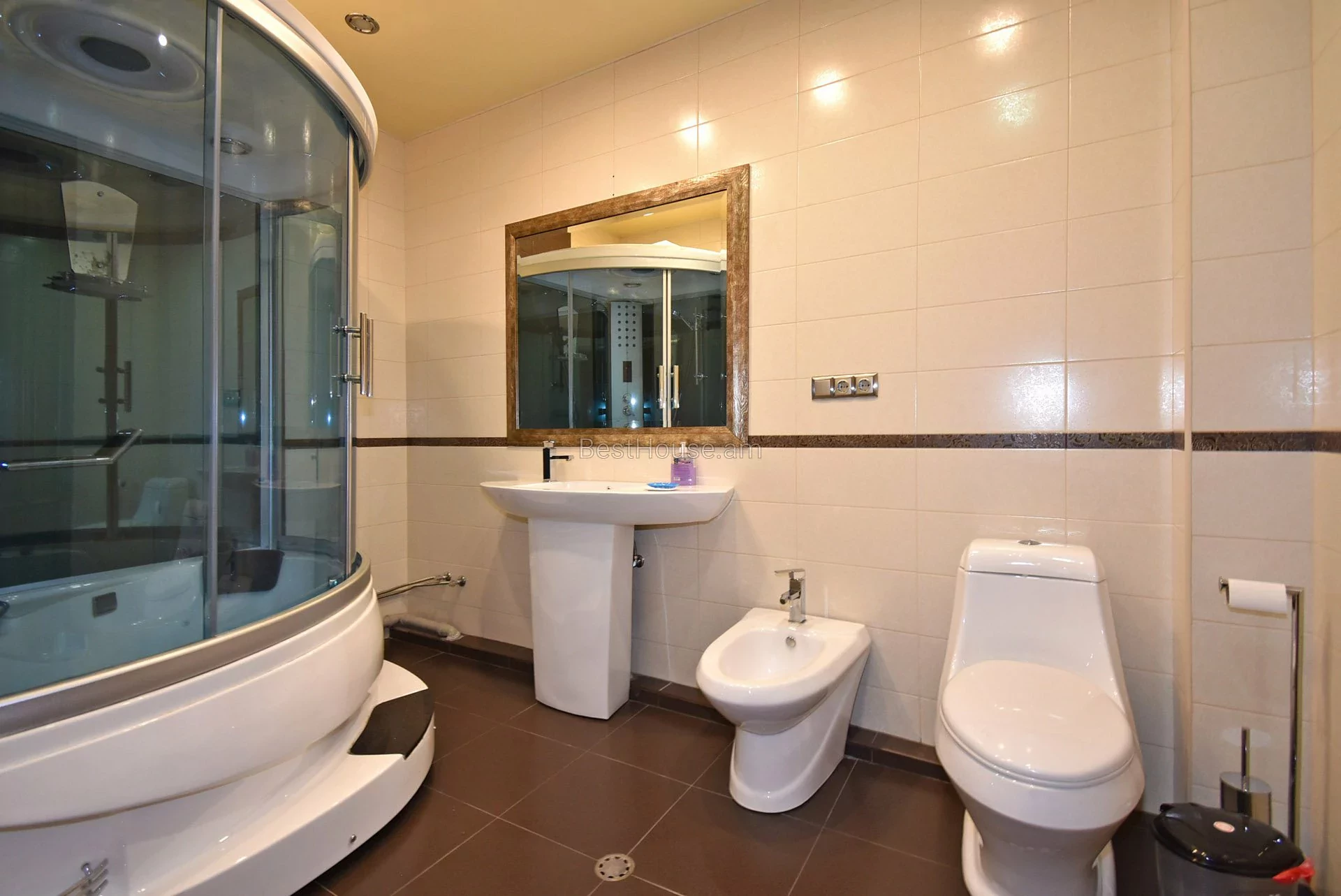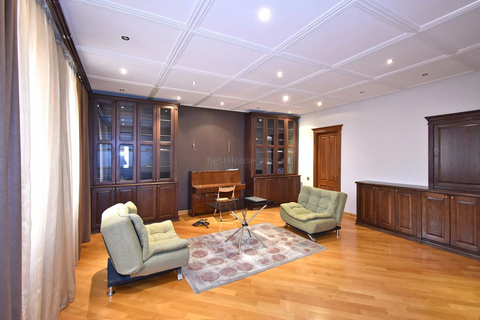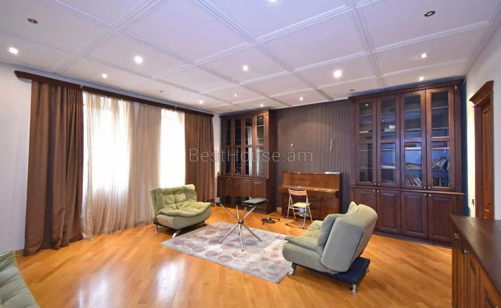 В аренду предлагается роскошная 5 комнатная квартира-пентхаус на перекрестке улиц Амирян и Закян, в двух шагах от Площади Республики. Квартира занимает 360 кв.м. на последнем этаже 10 этажной новостройки. Выполнен капитальный ремонт. Проведена централизованная система отопления. Окна - со стеклопакетами и с деревянными рамами. Пол - пресс гранит и паркет. Кухня и все 5 санузлов отделаны кафельной плиткой. Санузлы оснащены сантехникой. Квартира полностью обставлена качественной мебелью и укомплектована всей необходимой бытовой техникой. Есть 4 открытых балкона. Предусмотрена подземная парковка. Поблизости расположены кафе, рестораны, супермаркет "САС", банковские отделения, фирменные магазины.