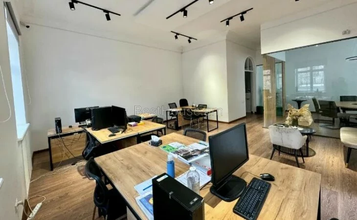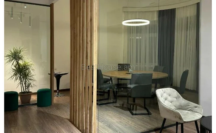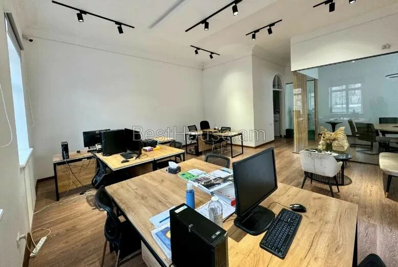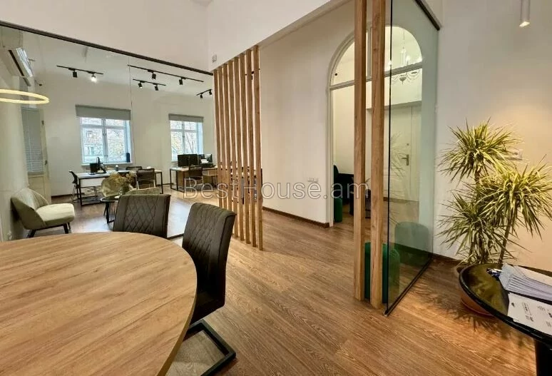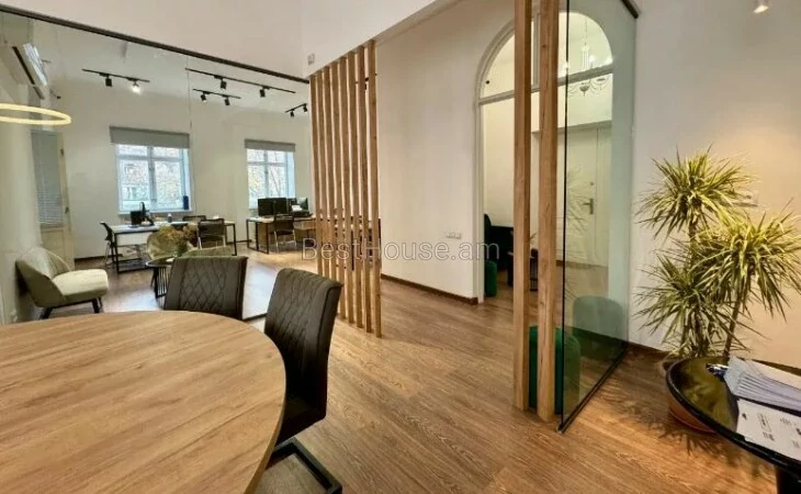 Сдается коммерческое помещение на втором этаже двухэтажного каменного здания на проспекте Баграмяна. Помещение выполнено в дизайнерском стиле.