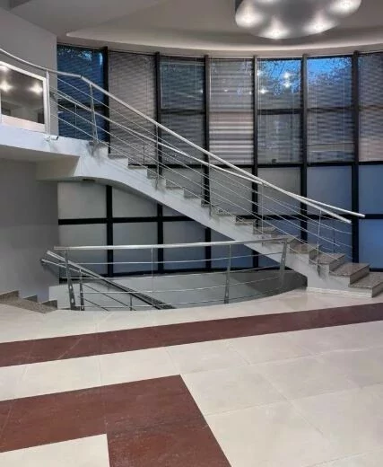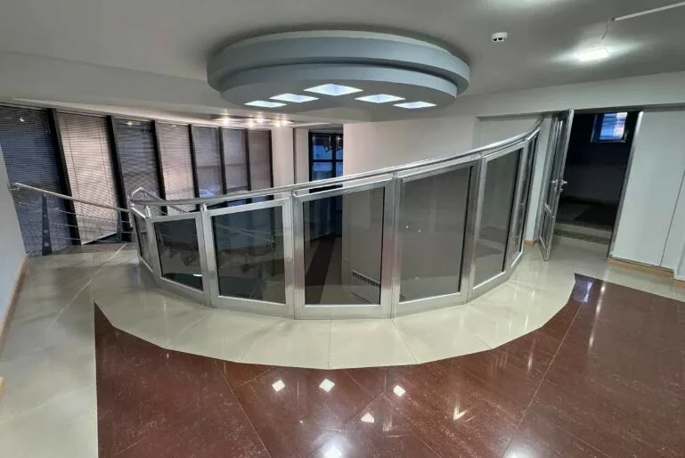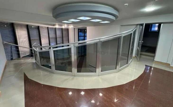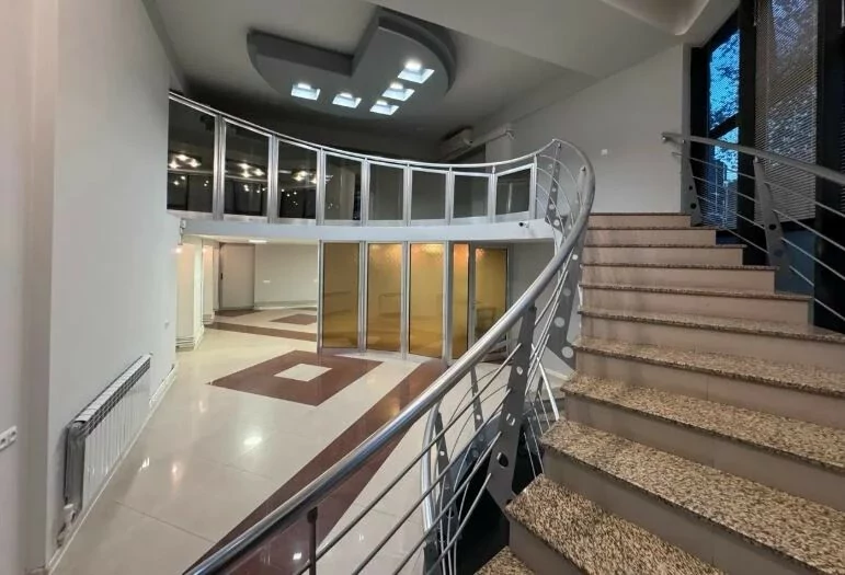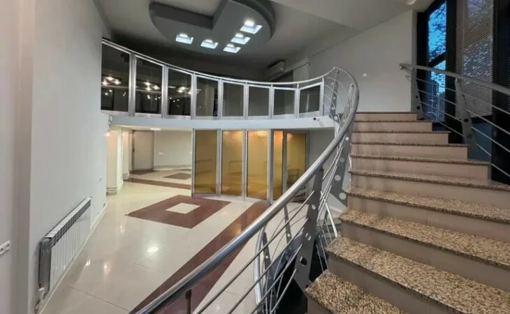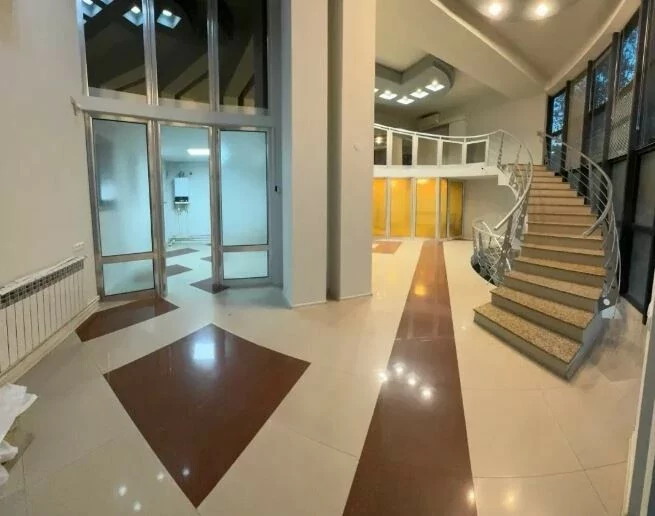 Есть горячая и холодная вода, отопление, охлаждение, система безопасности, системы видеозаписи, кладовая, 2 санузла, 1 кухня, 3 кабинета, 3 комнаты отдыха, помимо главного входа также отдельный вход со двора. Подходит под торговый центр, клинику, офис, выставочный зал.