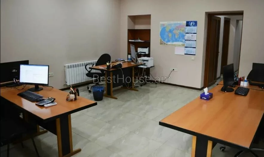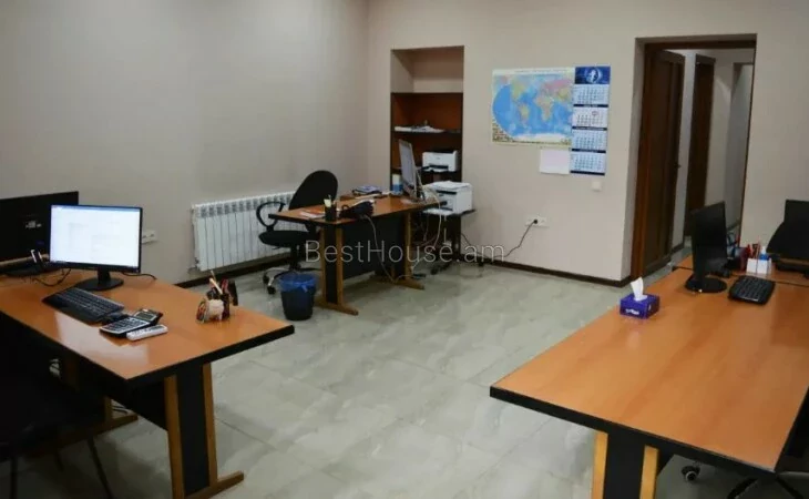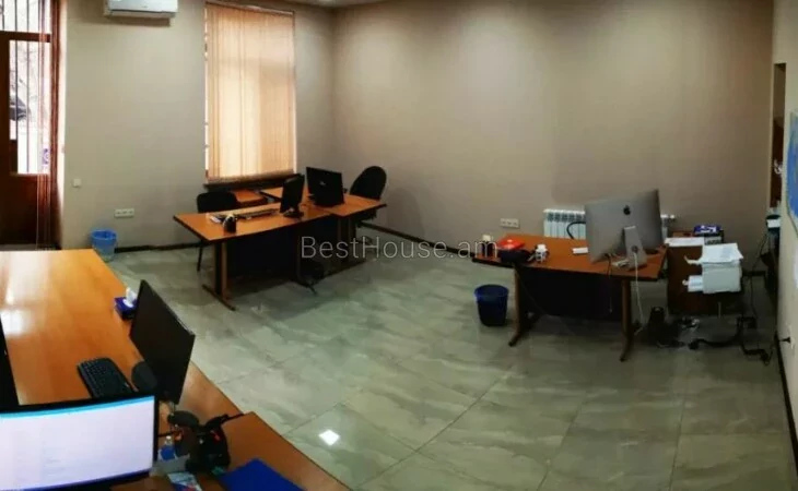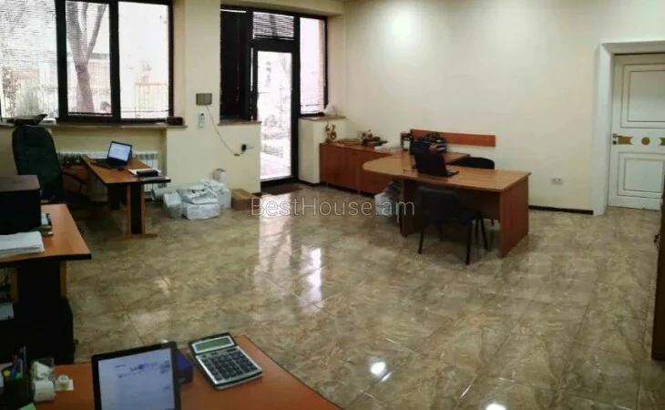 Сдается в аренду офисное помещение на улице Сундукяна, которое представляет собой отдельно стоящее здание и имеет огороженную зеленую территорию площадью 92 квадратных метра. Помимо трех главных парадных входов, есть еще два задних входа. Здание состоит из 4 больших помещений (офисная зона открытого типа), также имеется ресепшн, комната отдыха, 2 санузла, один из которых также является санузлом, 2 кухни. : Имеется 2 парковочных места в общем дворе, еще 2-3 парковочных места на прилегающей к улице территории. При въезде на парковку установлена система быстрой блокировки, управляемая с пультов дистанционного управления.