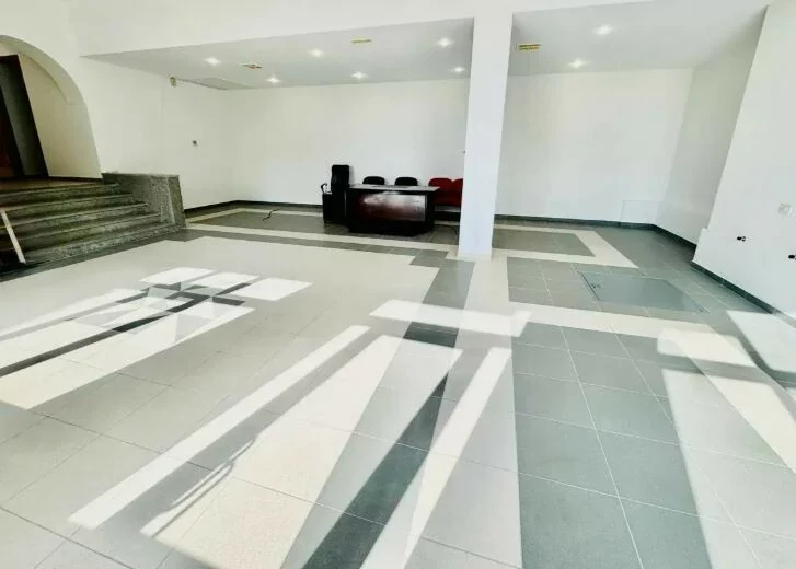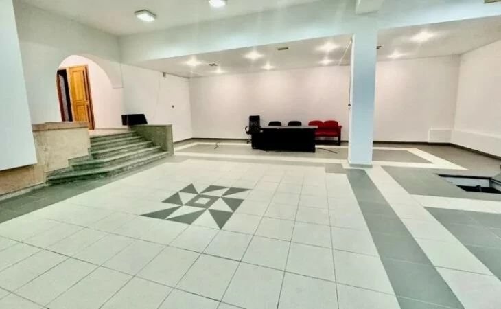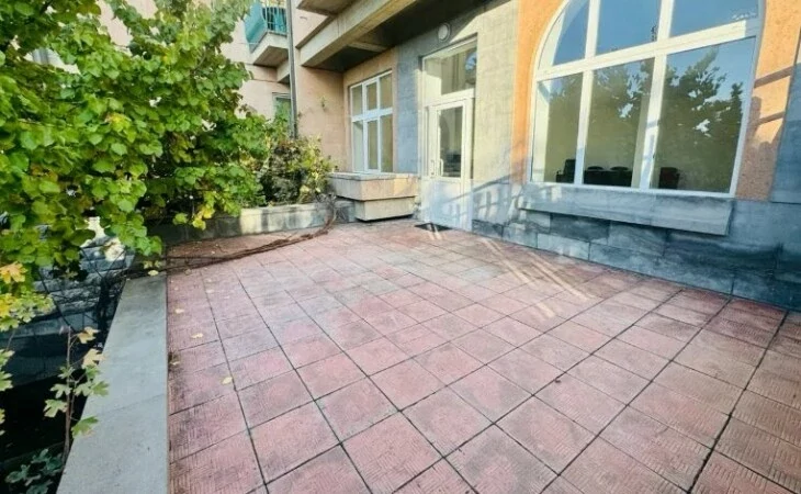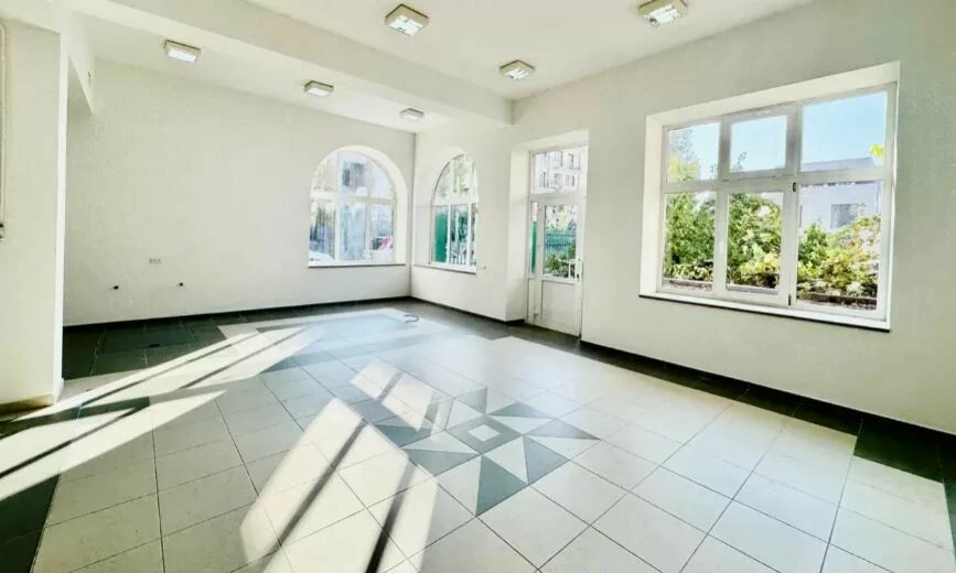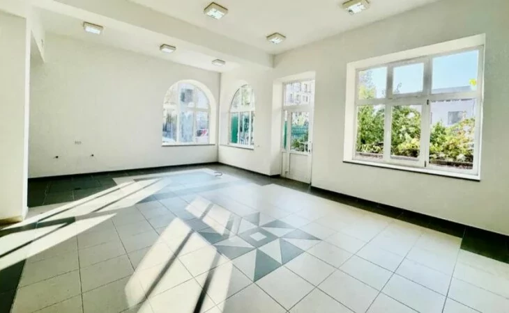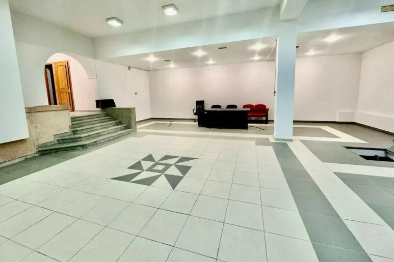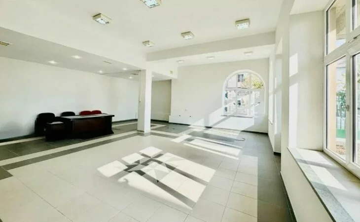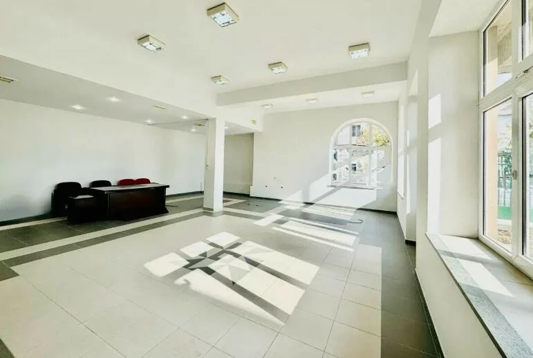 Офисное помещение 100 кв. м, на первом этаже 5-этажного нового здания из туфа, с отдельным входом, в очень хорошем состоянии, светлое, также имеется 1 комната, 1 санузел, подвал и дворовая территория.