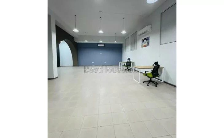 Офисное помещение на первом этаже с отдельным входом, со своим парковочным местом, ежедневной охраной. В нем есть перегородки, высокие потолки, рабочая зона 4 метра, кухня, кладовая, серверная, комната отдыха и т. д.