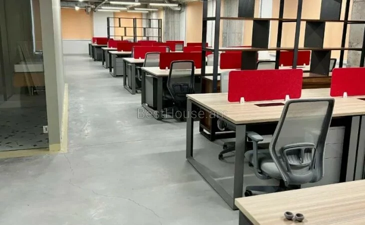 Помещение недавно отремонтировано и никогда не использовалось. Помещение имеет профессиональную систему вентиляции, 4 санузла, высокоскоростную кабельную сеть Интернет, оборудовано качественной офисной мебелью на 80 человек, кухню, отдельные кабинеты, конференц-зал, ресепшн, парковку для автомобилей, имеется собственный двор.