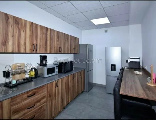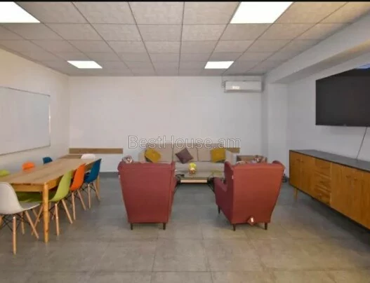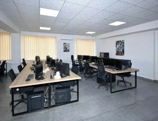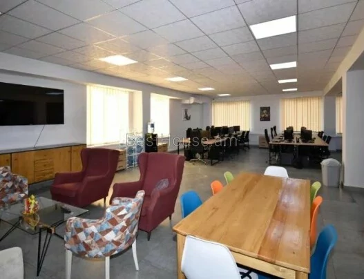 Площадь расположена на улице Севан, 1-я линия. Вход с улицы. Крыльцо 50 кв. м, которое может служить зоной ресепшен, где может быть стол для помощника по офису, стол для охранника, диван, стол, кресло, телевизор. С первого этажа спускается технический этаж, где хранится наиболее часто используемое оборудование, техника, оборудование видеонаблюдения, электрораспределители, емкости для воды. Второй этаж разделен на две части. Правая часть общей площадью 150 кв. м, открытое пространство, где также есть санузел. Левая часть разделена на комнаты: директорская - 25 кв. м, бухгалтерия - 25 кв. м, переговорная - 35 кв. м, кухня - 25 кв. м, широкий коридор, санузел. На 3 этаже правое крыло - 150 кв. м просторного открытого пространства, левая часть - аналогично. На 4 этаже 2 небольших офиса по 8 кв. м со своей кофейной зоной. Солнечные батареи установлены на плоских крышах. Во всех комнатах есть балконы. Комнаты очень светлые. Подходит для отдельного офиса - IT, TV, Логистического учебного центра, Медицинского центра или гостиницы. Расположен в 300 метрах от станции метро Сасунци Давид и Ереванской ярмарки. Рядом строятся жилые дома, бизнес-центры, магазины.