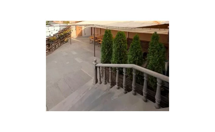 Расположенное на 1-й линии, рядом с медицинским центром «Эребуни», оно просторное, полностью отремонтированное, оборудовано кондиционерами и интернетом. Имеется зарядная станция для электромобилей.