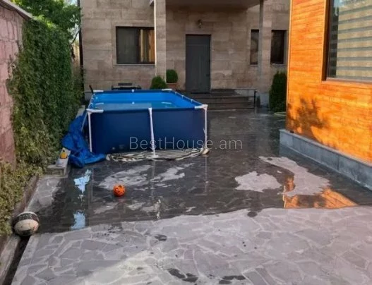 За домом есть свободный участок площадью 110 квадратных метров, на котором построен бассейн с подогревом площадью 20 квадратных метров (3 х 6,8 м).