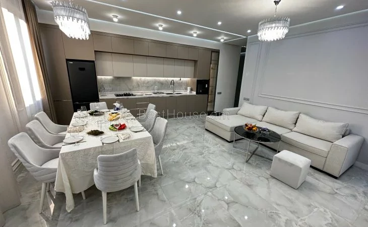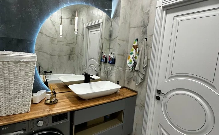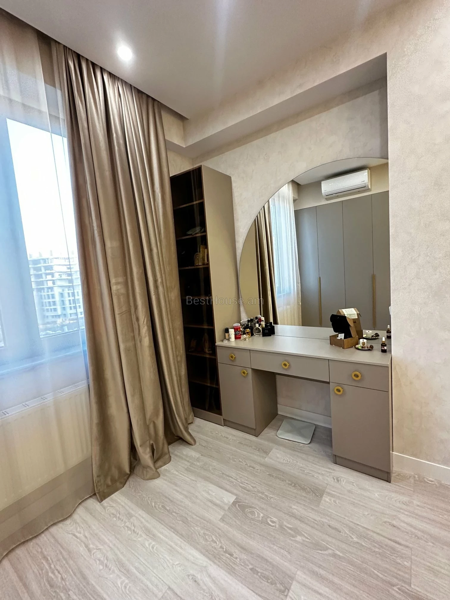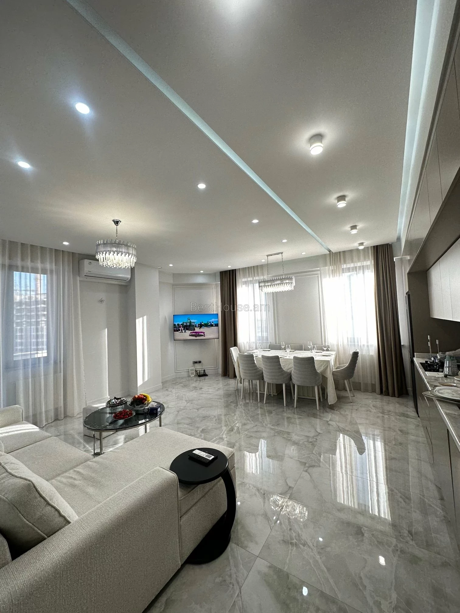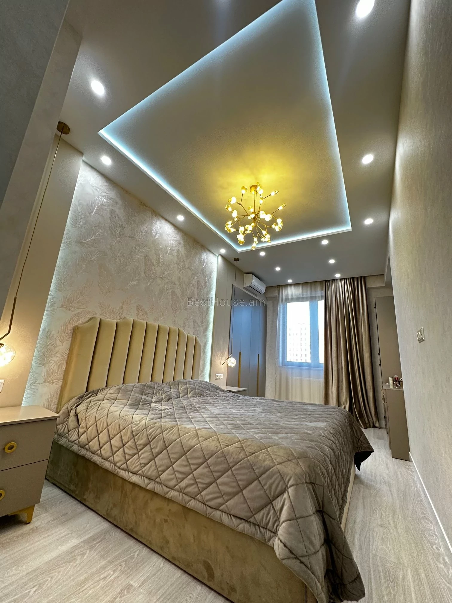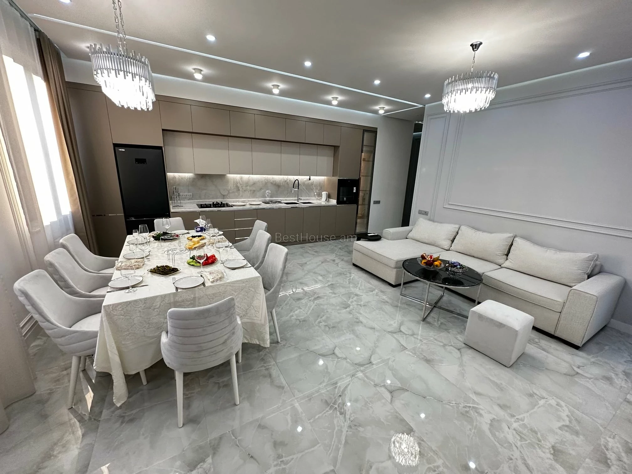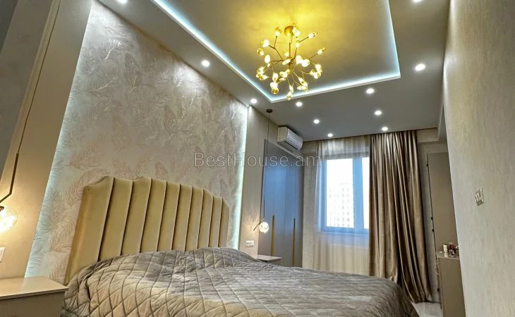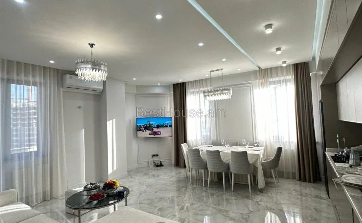 Продается 3-комнатная квартира с дизайнерским ремонтом в новом элитном доме по улице Грибоедова, есть открытый балкон, в гостиной 3 окна, 2 отдельные спальни, солнечно, красивый вид. горы Арарат. Продается с мебелью и техникой.