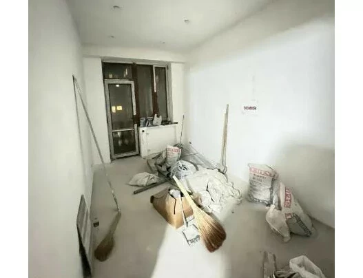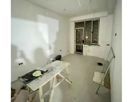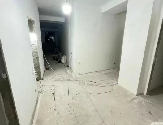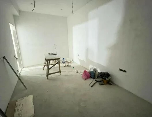 Стены выровнены и готовы к покраске, межкомнатные двери не установлены, но имеются. Также установлен кондиционер.