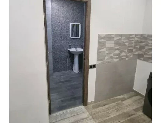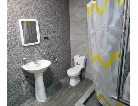 Ванная комната выложена плиткой, пол – вьетнамский дуб.